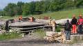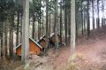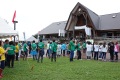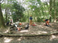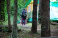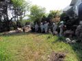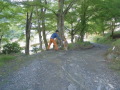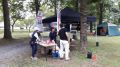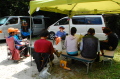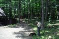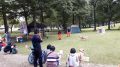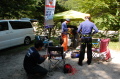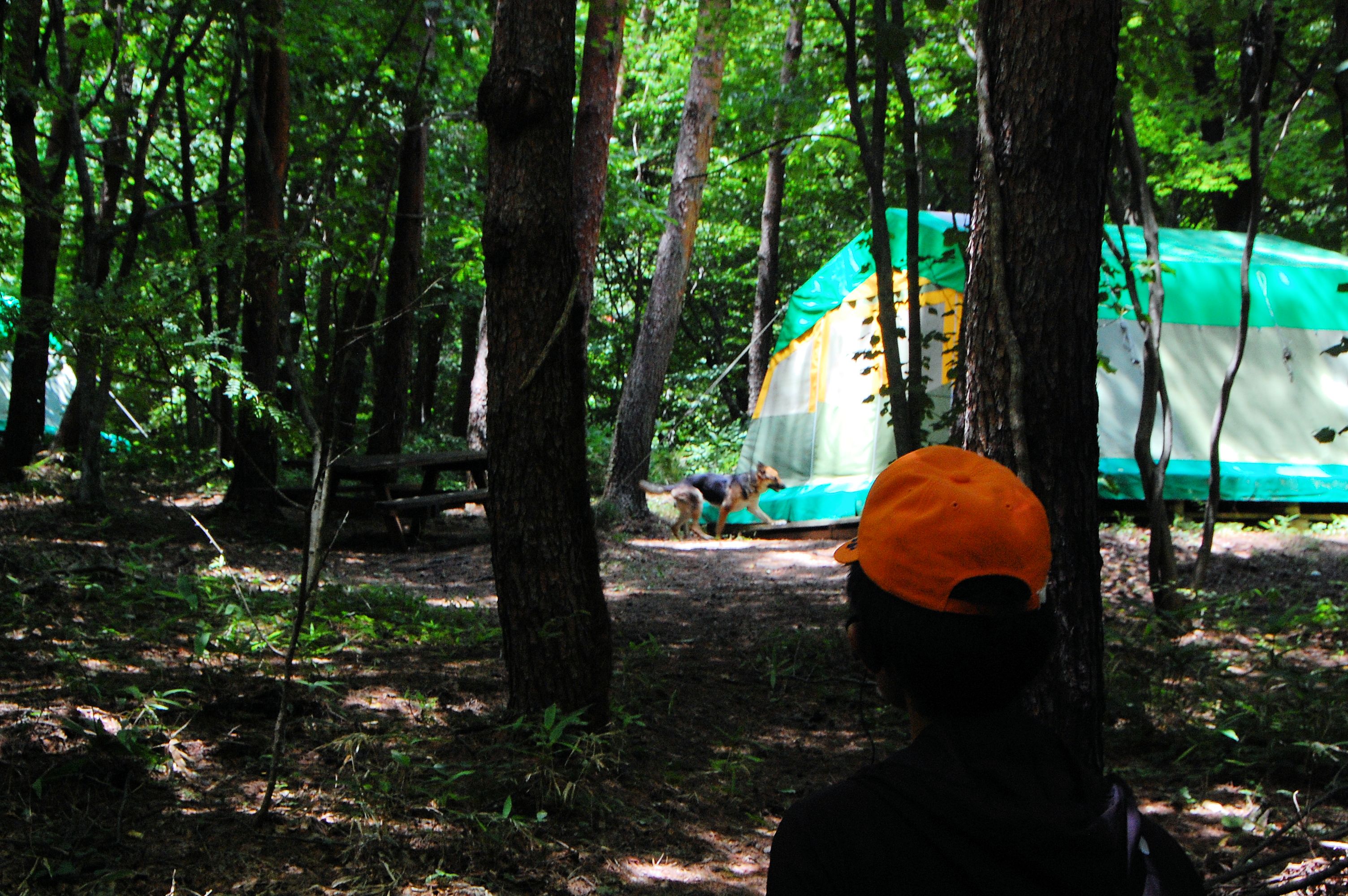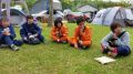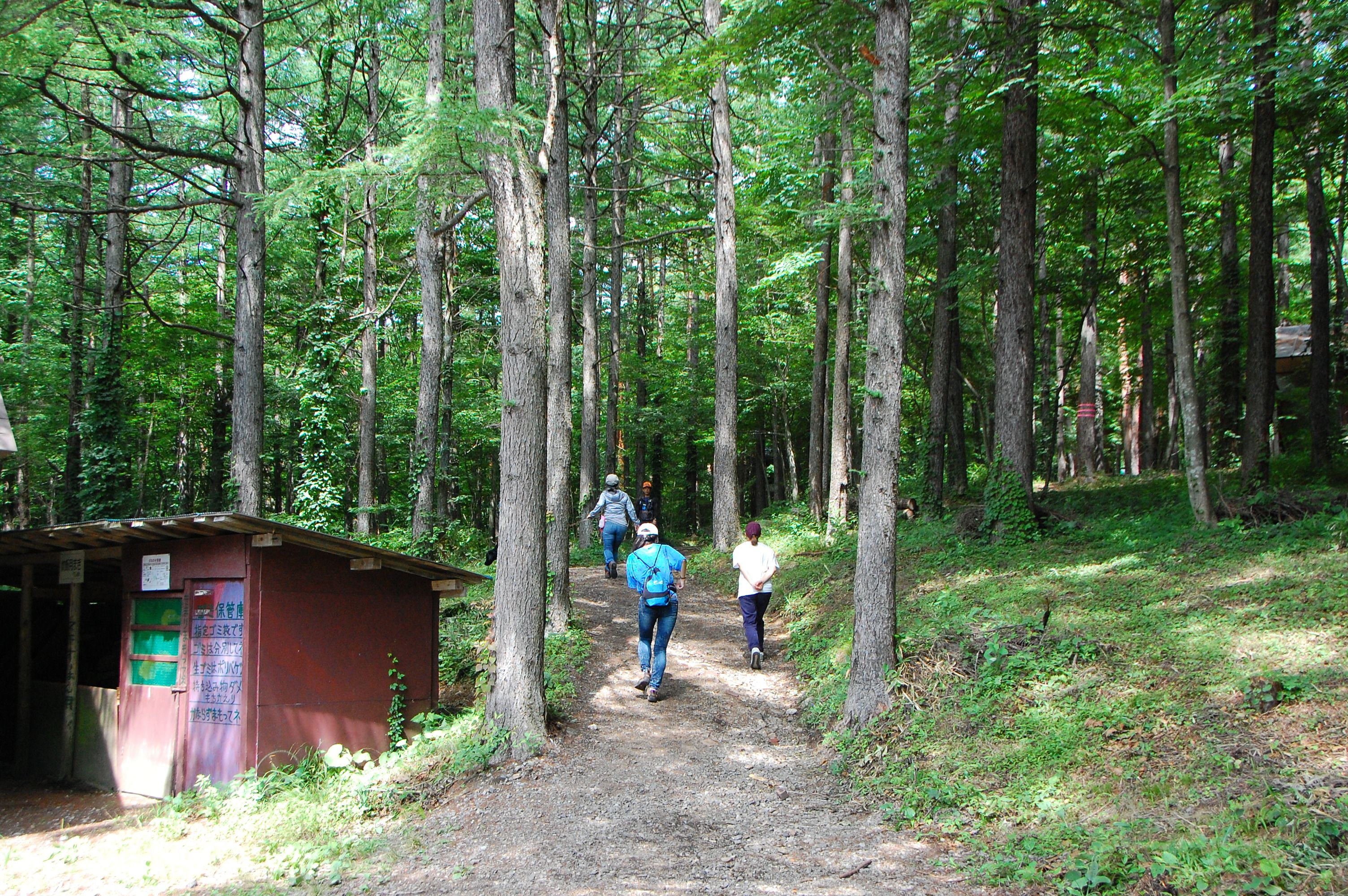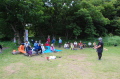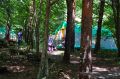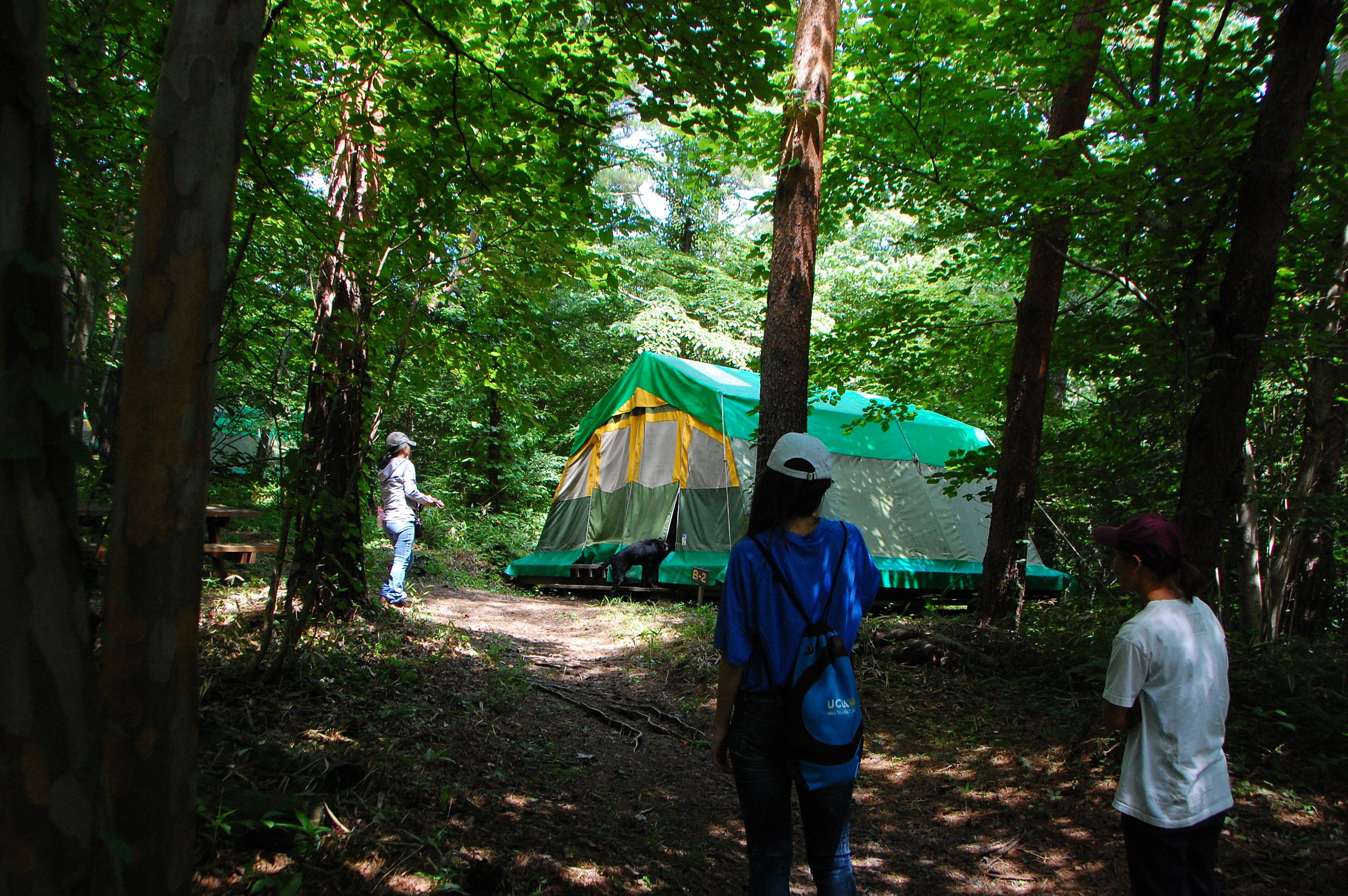 朝のラジオ体操から1日が始まる。熊の目撃情報もあり鈴を付けて訓練に入る。キャンプ場は木立の中で涼しい。