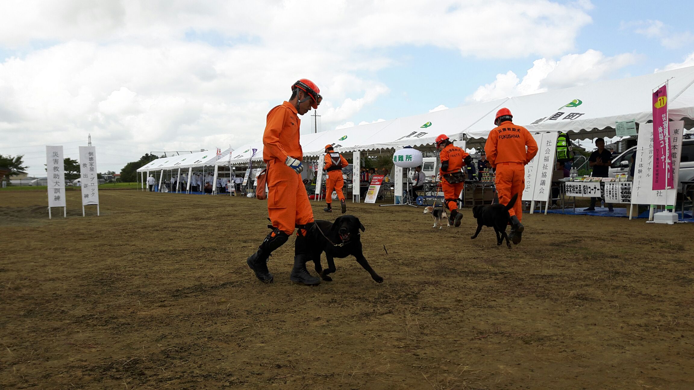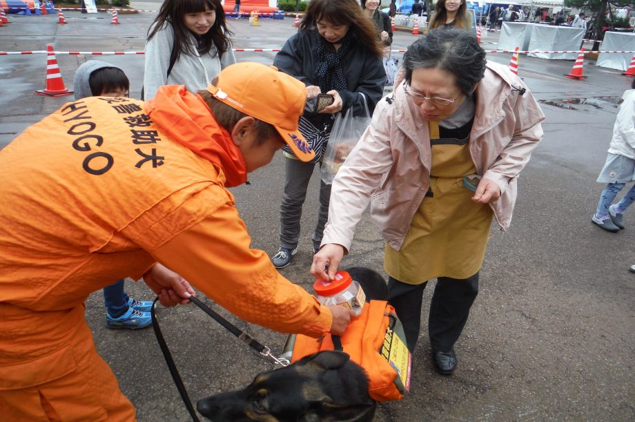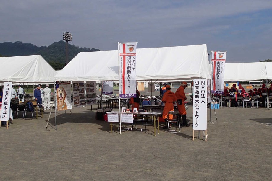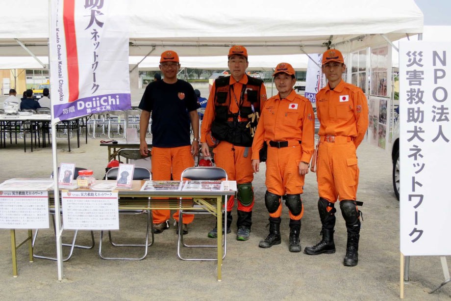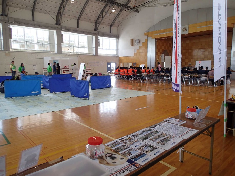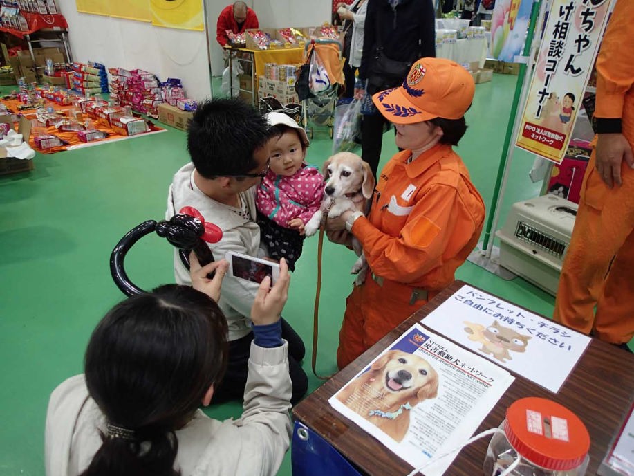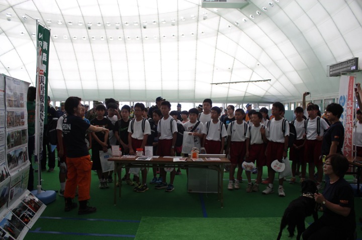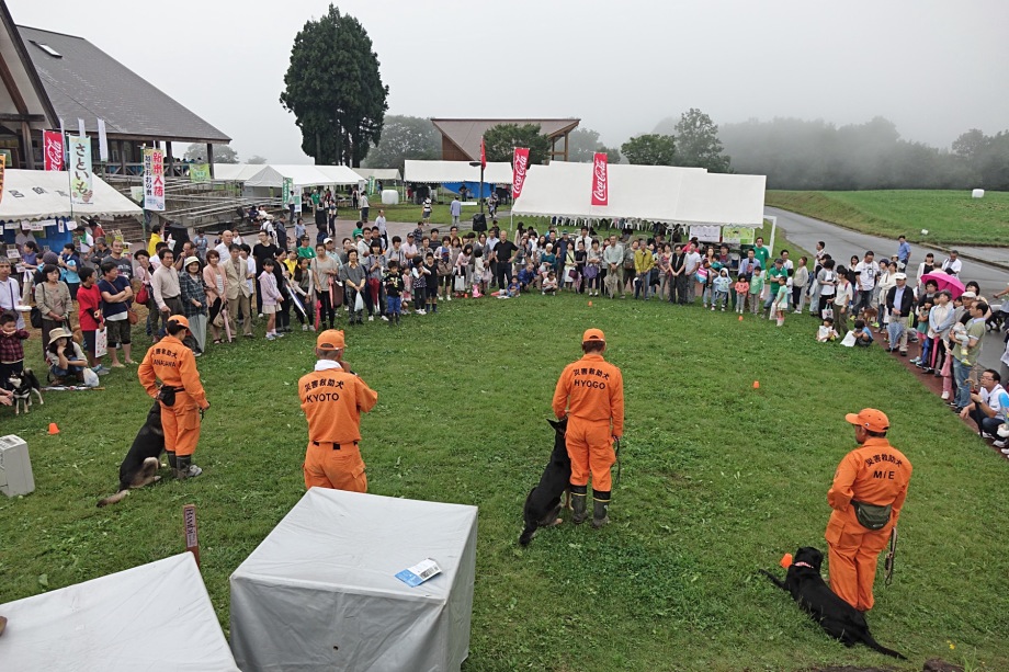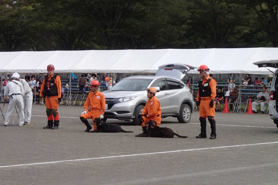 東日本大震災の被災を受けて防災意識も高く、町を挙げて取り組んでいる様子である。災害救助犬への期待も感じ広報ブースでも質問を多く受けた。支援の募金もたくさんいただきありがとうございました。