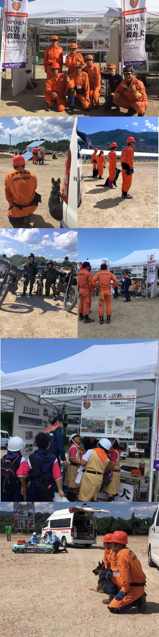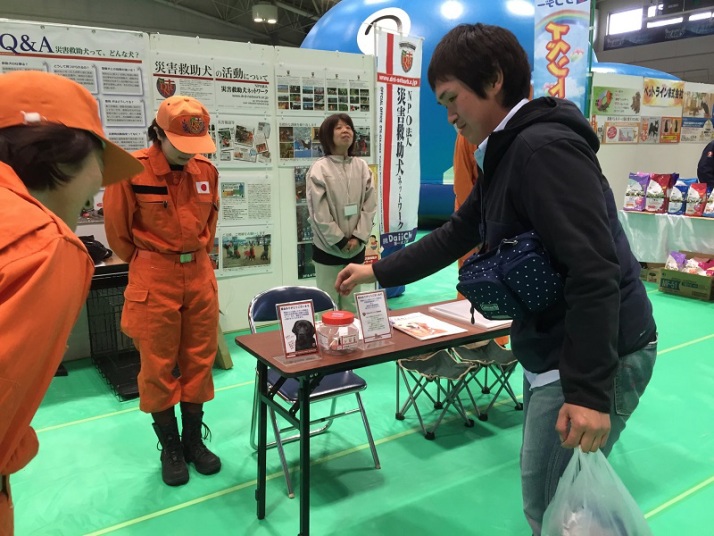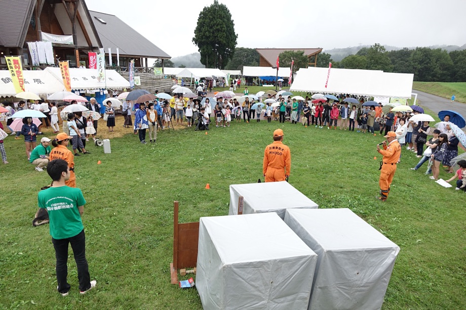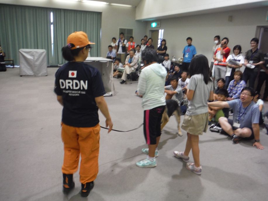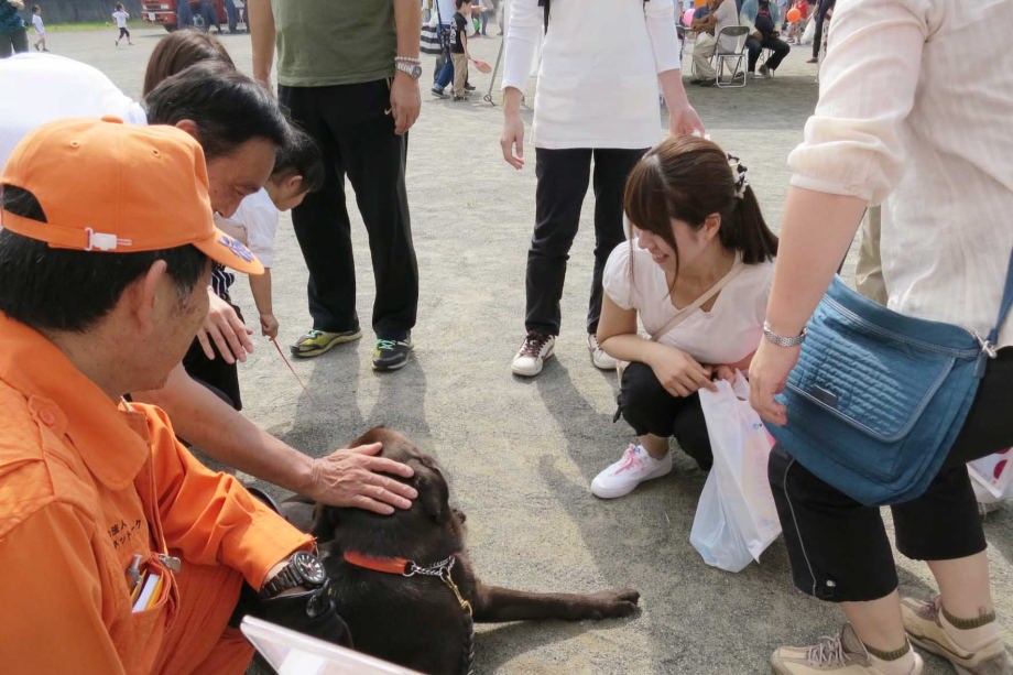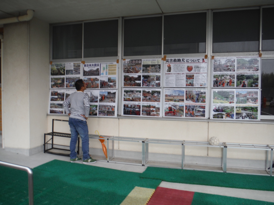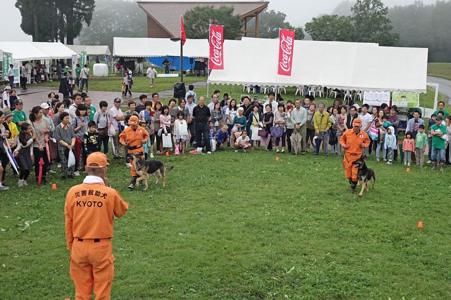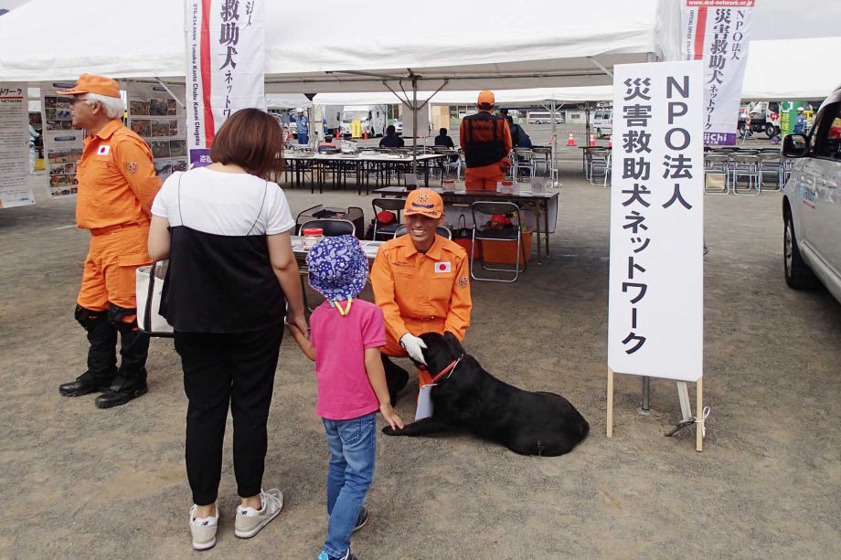 東日本大震災の被災を受けて防災意識も高く、町を挙げて取り組んでいる様子である。災害救助犬への期待も感じ広報ブースでも質問を多く受けた。支援の募金もたくさんいただきありがとうございました。