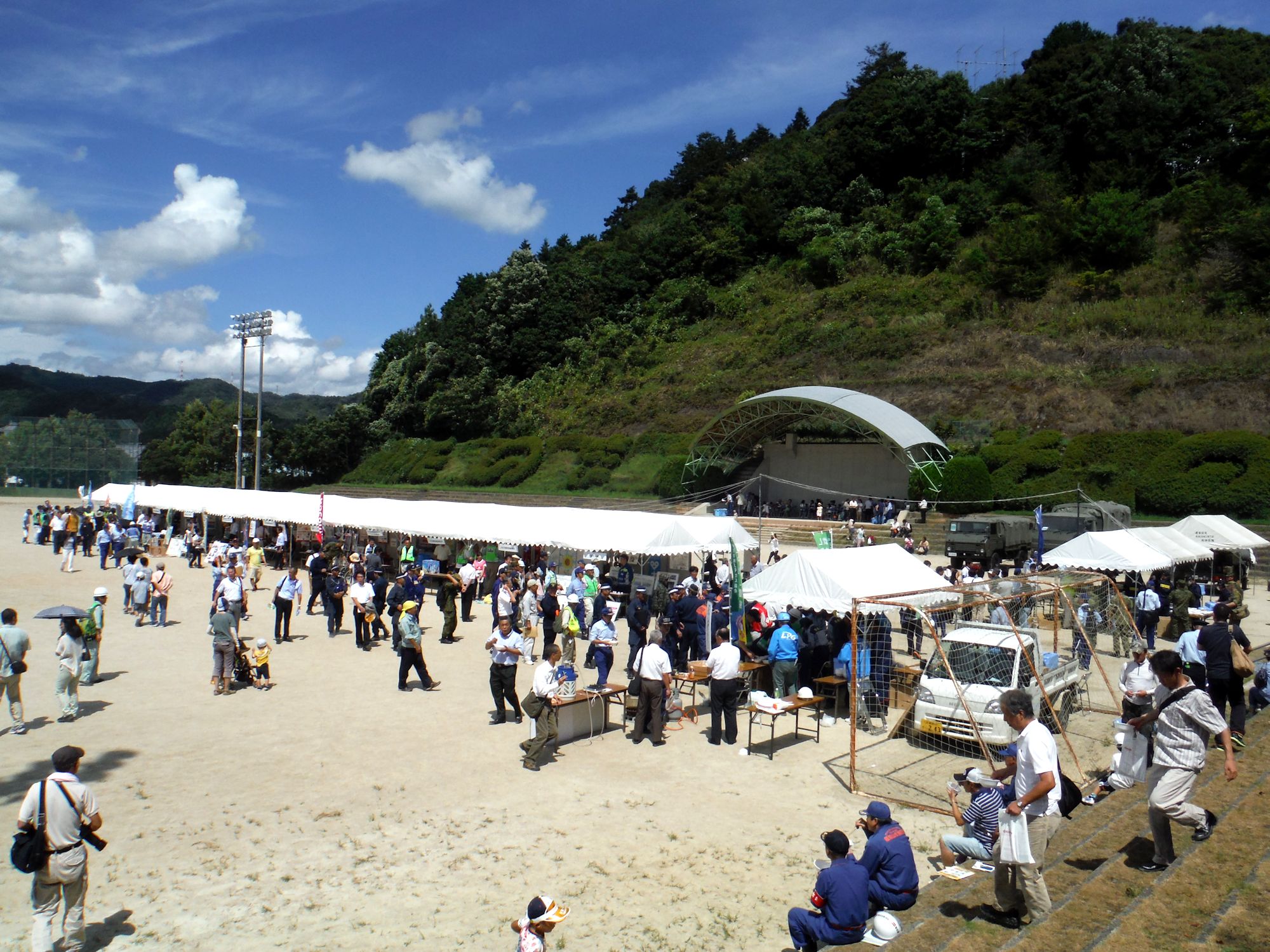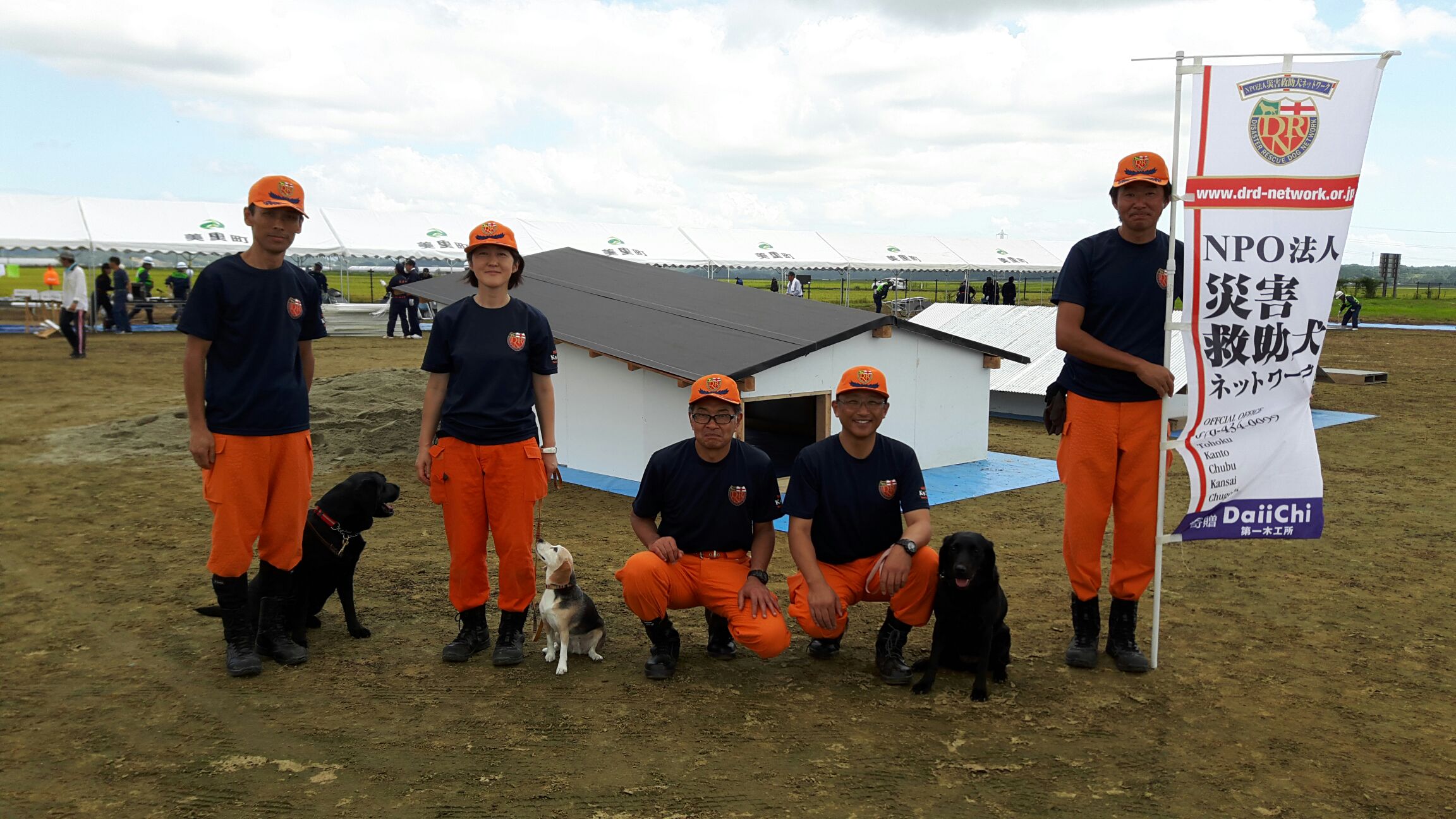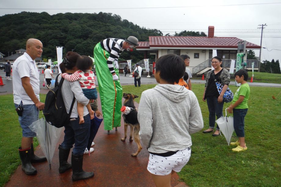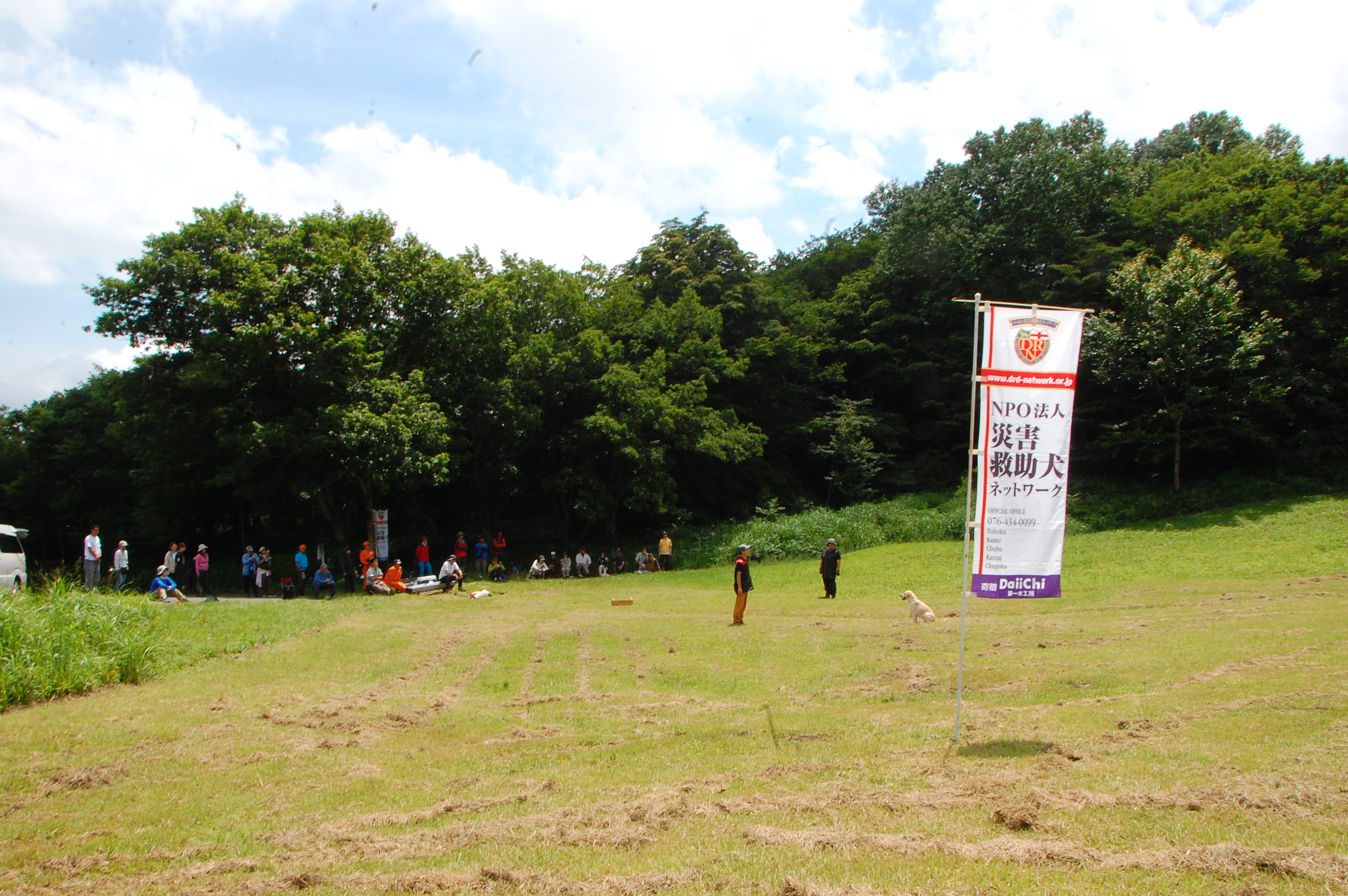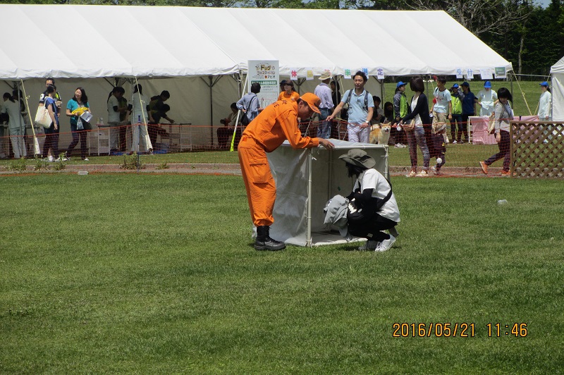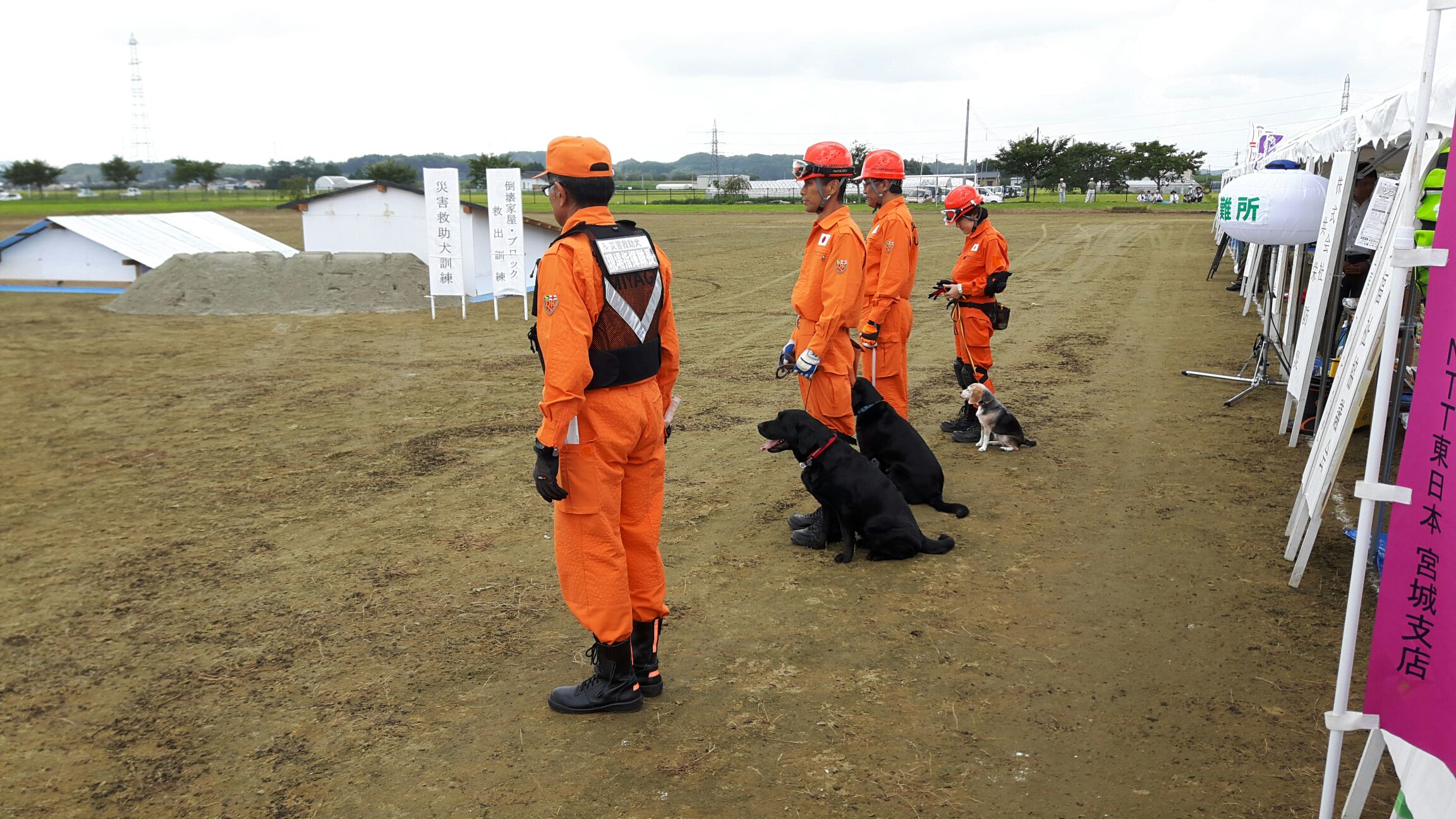 東日本大震災の被災を受けて防災意識も高く、町を挙げて取り組んでいる様子である。災害救助犬への期待も感じ広報ブースでも質問を多く受けた。支援の募金もたくさんいただきありがとうございました。