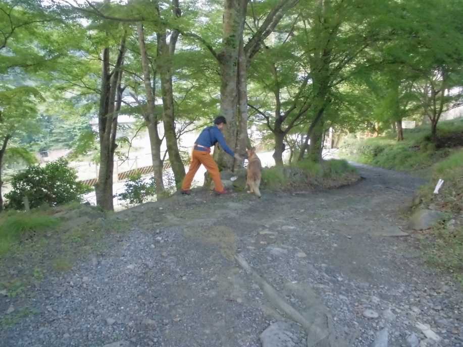 猛暑の都会とはかけ離れ、涼しくて朝夕は寒いぐらいであり、犬には行動しやすい環境である。