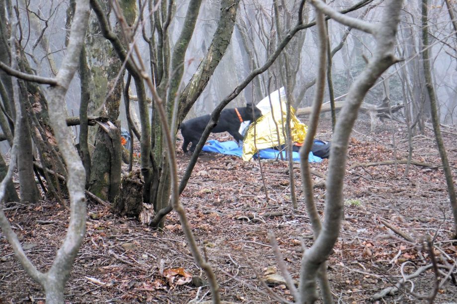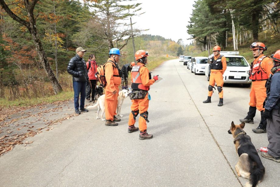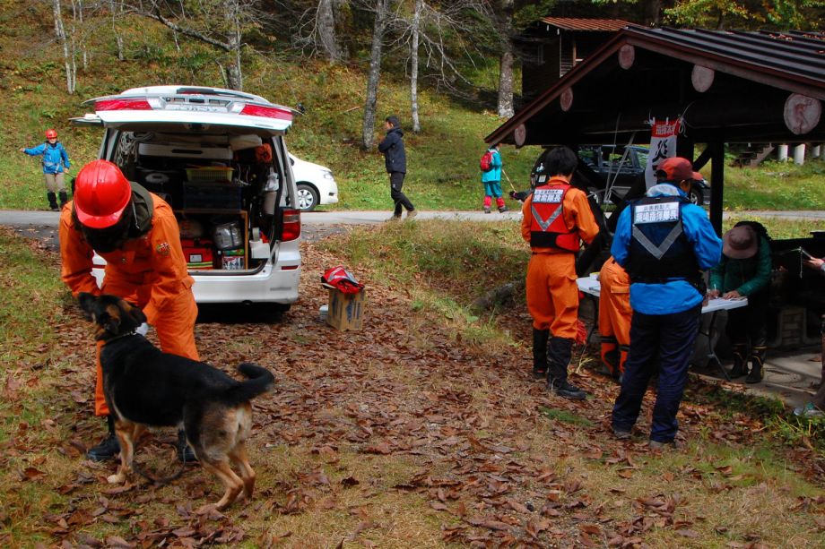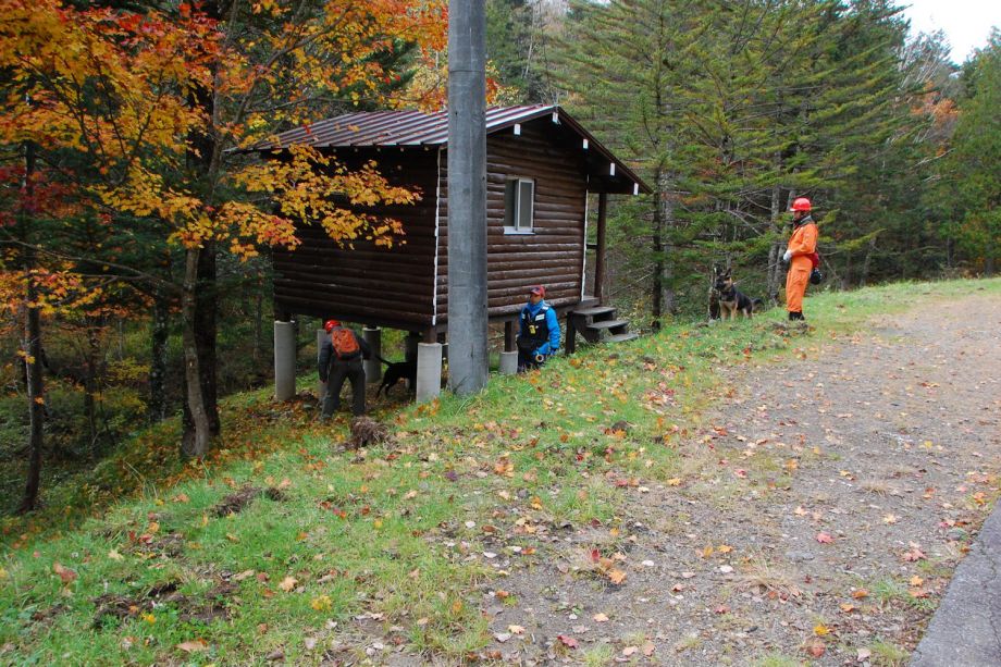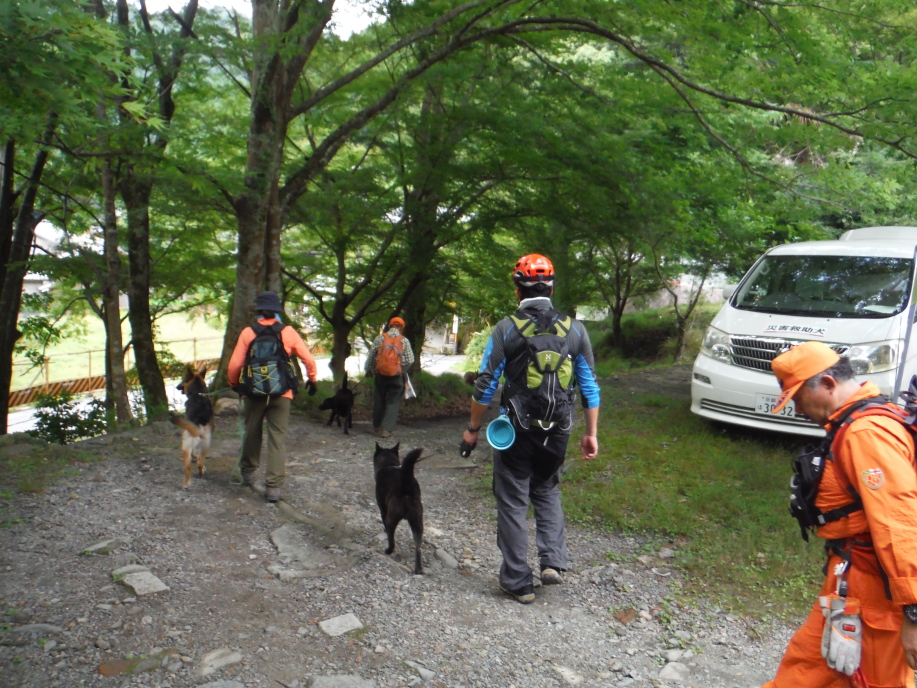 入山口でご家族とも面談したが、藁をも掴む心境であろう。私たちに何ができるのか。人命救助ではあるが、災害救助犬が特性を出して役に立てるのであろうか。そんな自問自答をしながら解散したが、社会で起こる現実的な要望、期待に応える手立ても考えて行かなければならない課題でもある。山岳会は不明以来、有志で捜索活動に協力している。