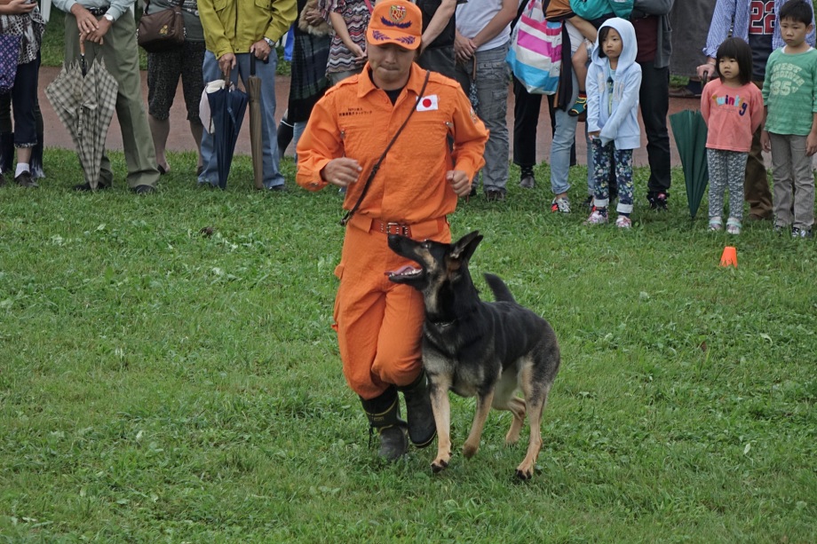 臭覚が優れ行方不明者の捜索には役立つかも知れないことは想像できるが、現場の最前線で行動するうえで必要なことは指示に従って安全に任務を遂行できるか。偶然は作業犬としての成果ではない。現場では求められる回答を出さなくてはならない。成果を争って身勝手に行動することは許されるものではない。緊迫した状況で冷静に行動するためには指導手との関係性、服従性が欠かせない。犬が身勝手に行動することなく捜索チームの一員となって行動できるか。救助隊への信頼はその点にあると思っている。そのためのデモでもある。