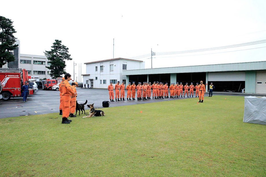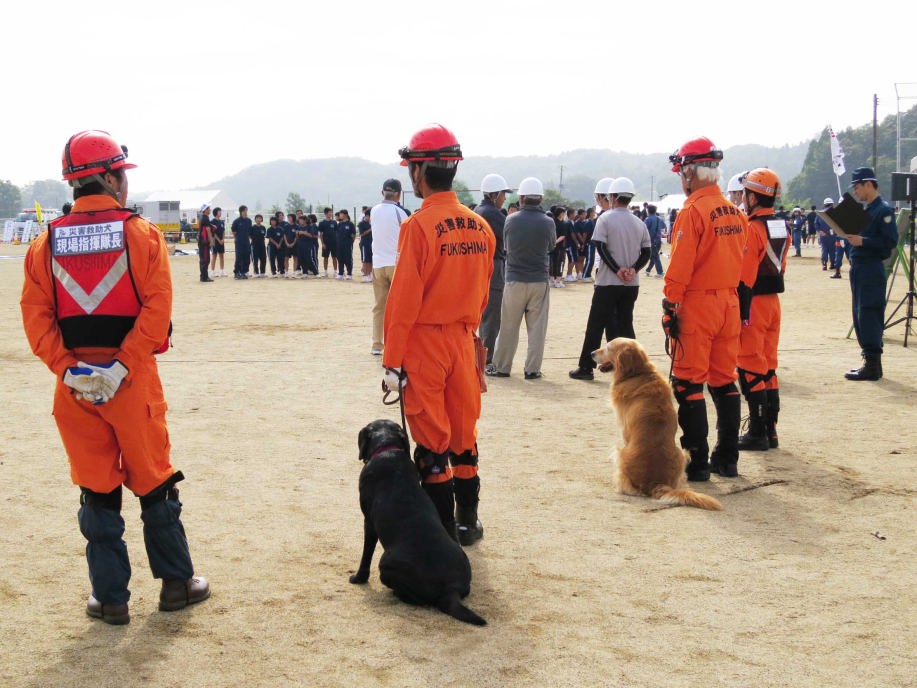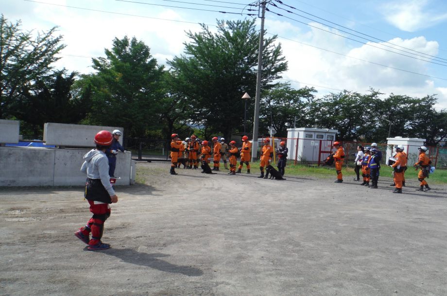 2016福島県防災訓練の主会場である会津若松市消防は災害救助犬への期待も示してもらっているので実務的な訓練も行っていきたい。