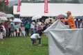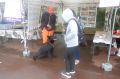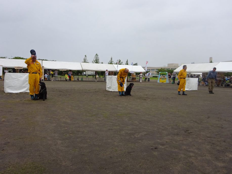 毎年多くの来場者があるがあいにく天候が悪く、デモの観客もまばらで拍子抜けの感じであったが、予定通り3回のデモを行った。午後からは天候も回復しデモの観客も増えたが、アトラクションのように一過性になりがちなのでテントブースで待ち受けているだけでなく犬に募金箱を付けて場内を巡回して積極的に広報活動を行った。