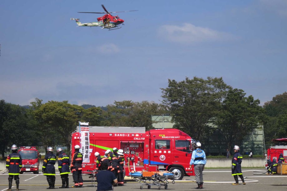 ドラマチックな演出で毎年市民の来場者も多く、防災意識を高めてもらうことに成功している佐野市総合防災訓練が田沼グリーンスポーツセンターで開催された。