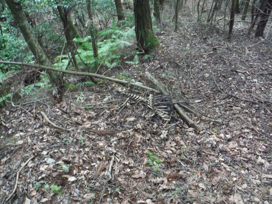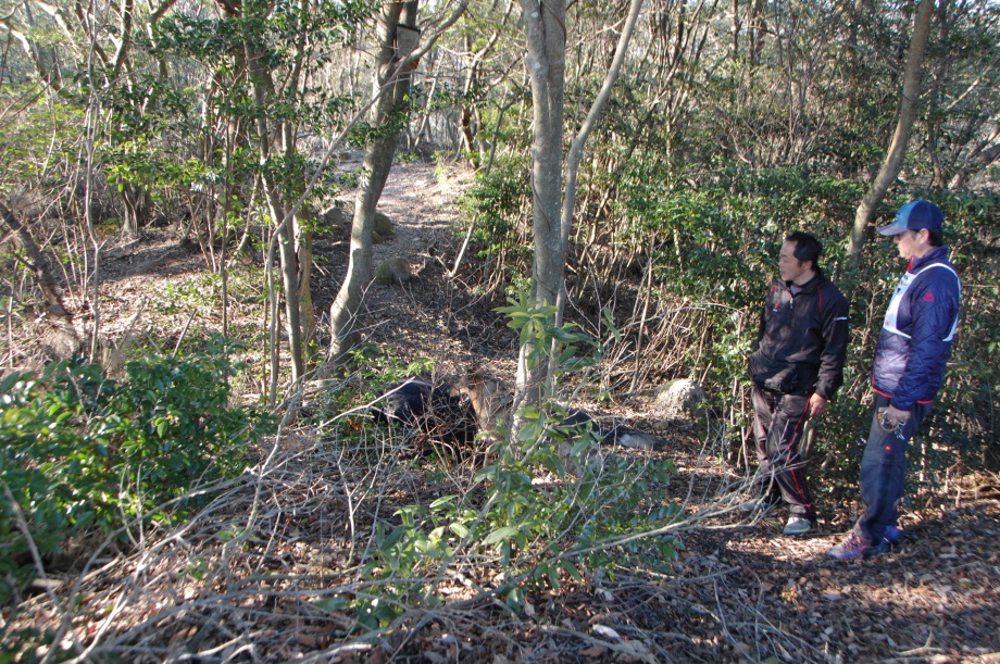 登山者からの異臭情報地点(135.38.06:35.02.19)付近の確認で動物の死骸はあったが、それが異臭源かどうかはわからない。