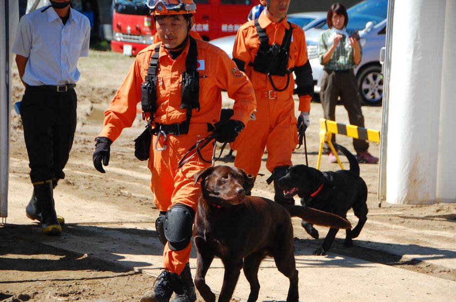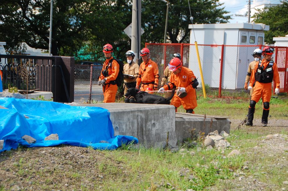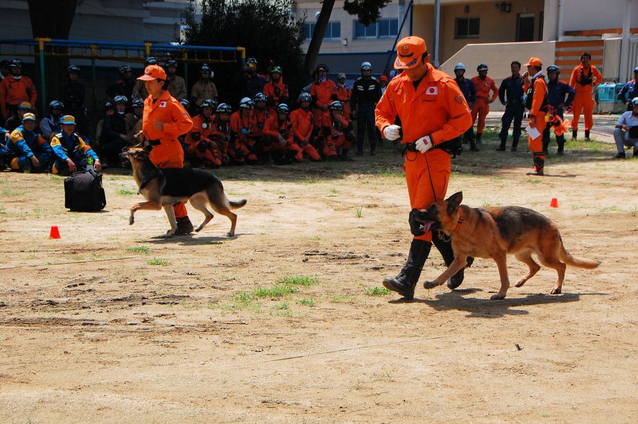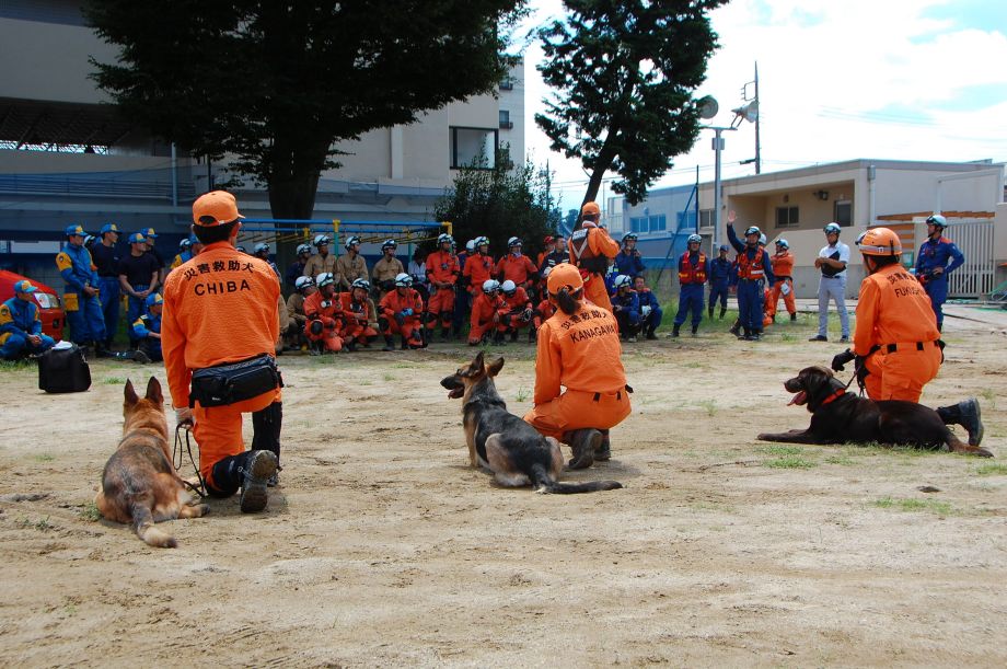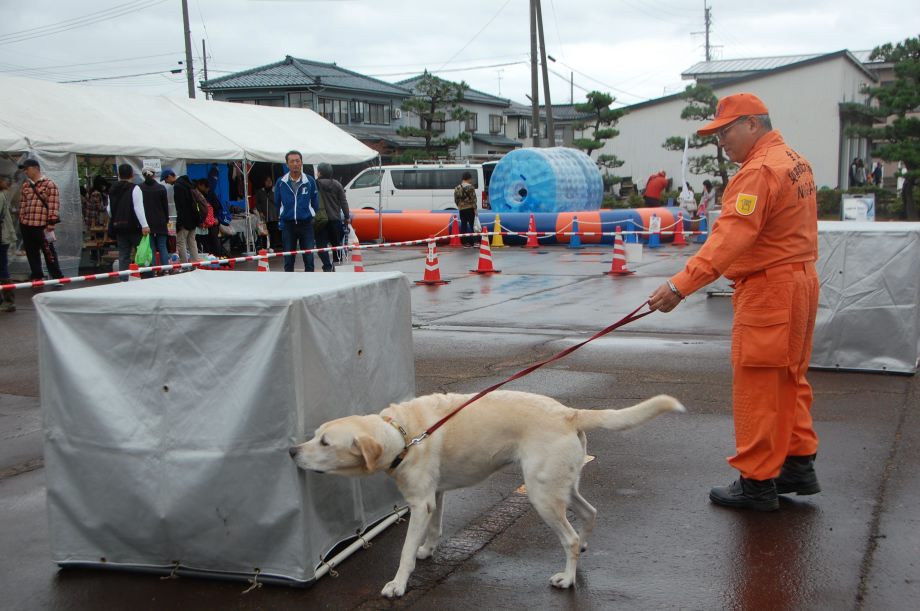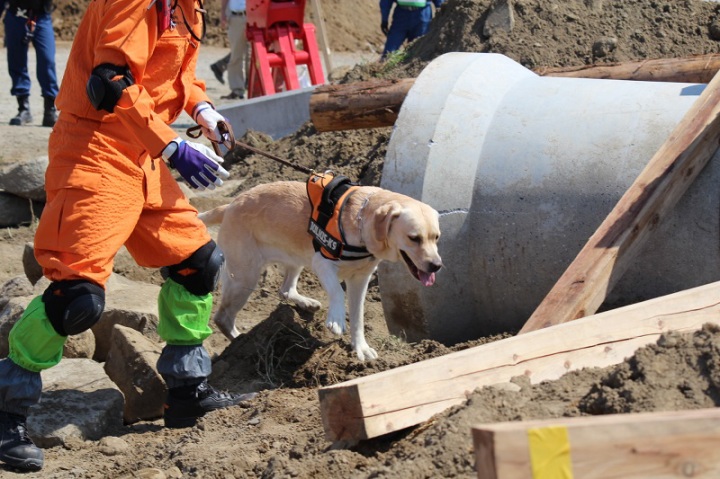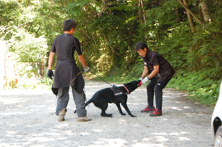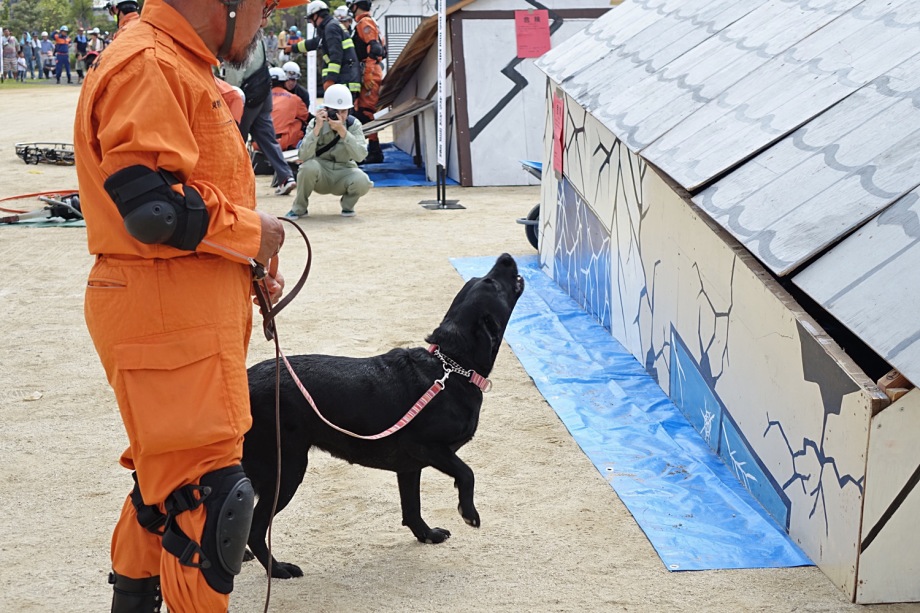 災害救助犬は捜索が重視されがちであるが、服従の是非が成果に直結するであろうことも意識されだしたようである。
