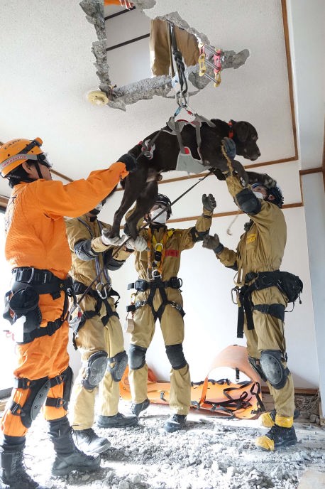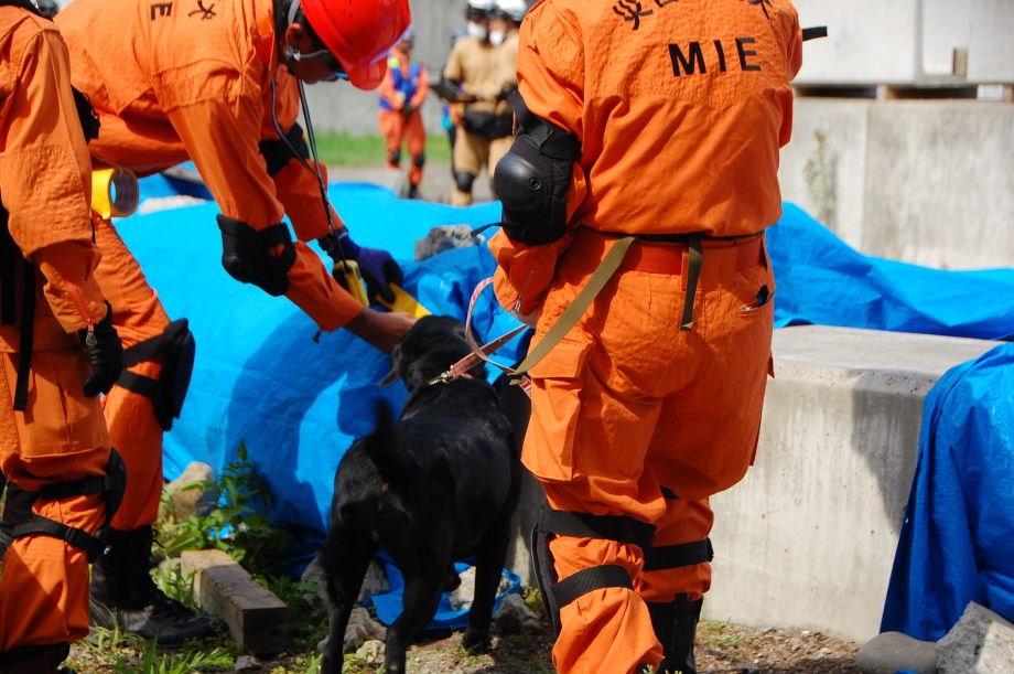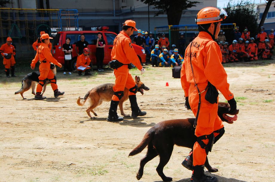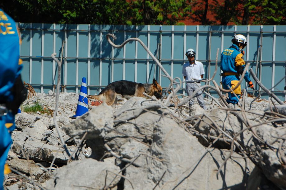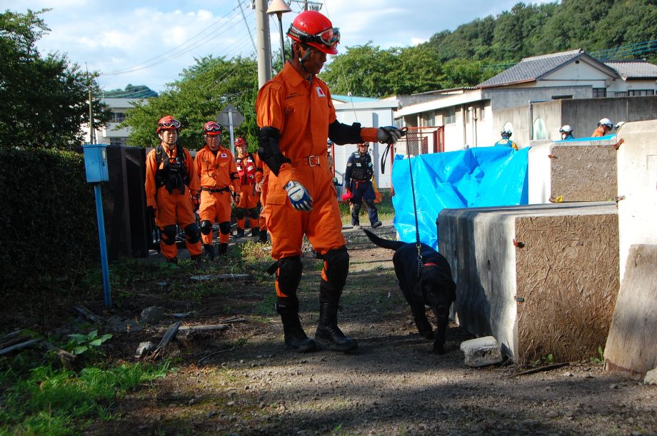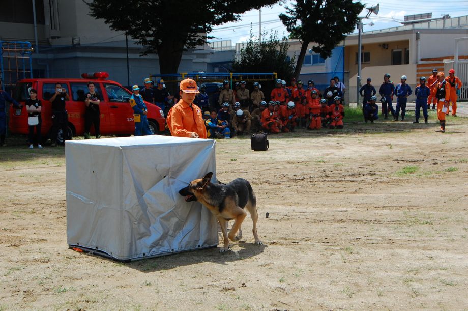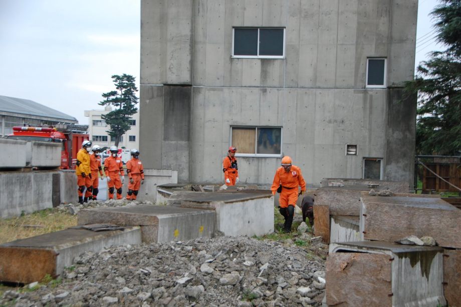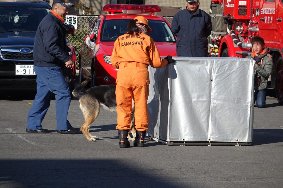 災害救助犬は捜索が重視されがちであるが、服従の是非が成果に直結するであろうことも意識されだしたようである。