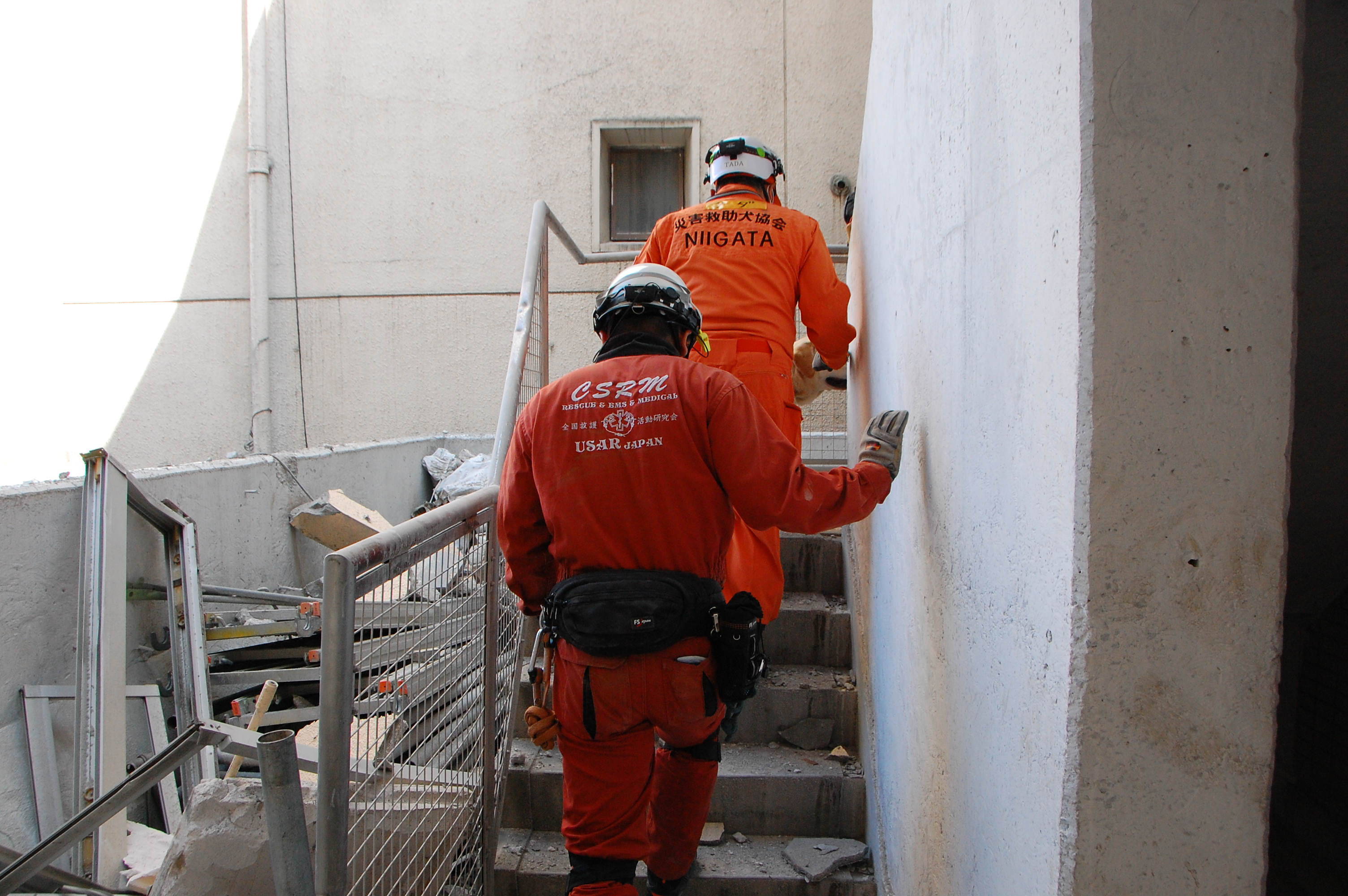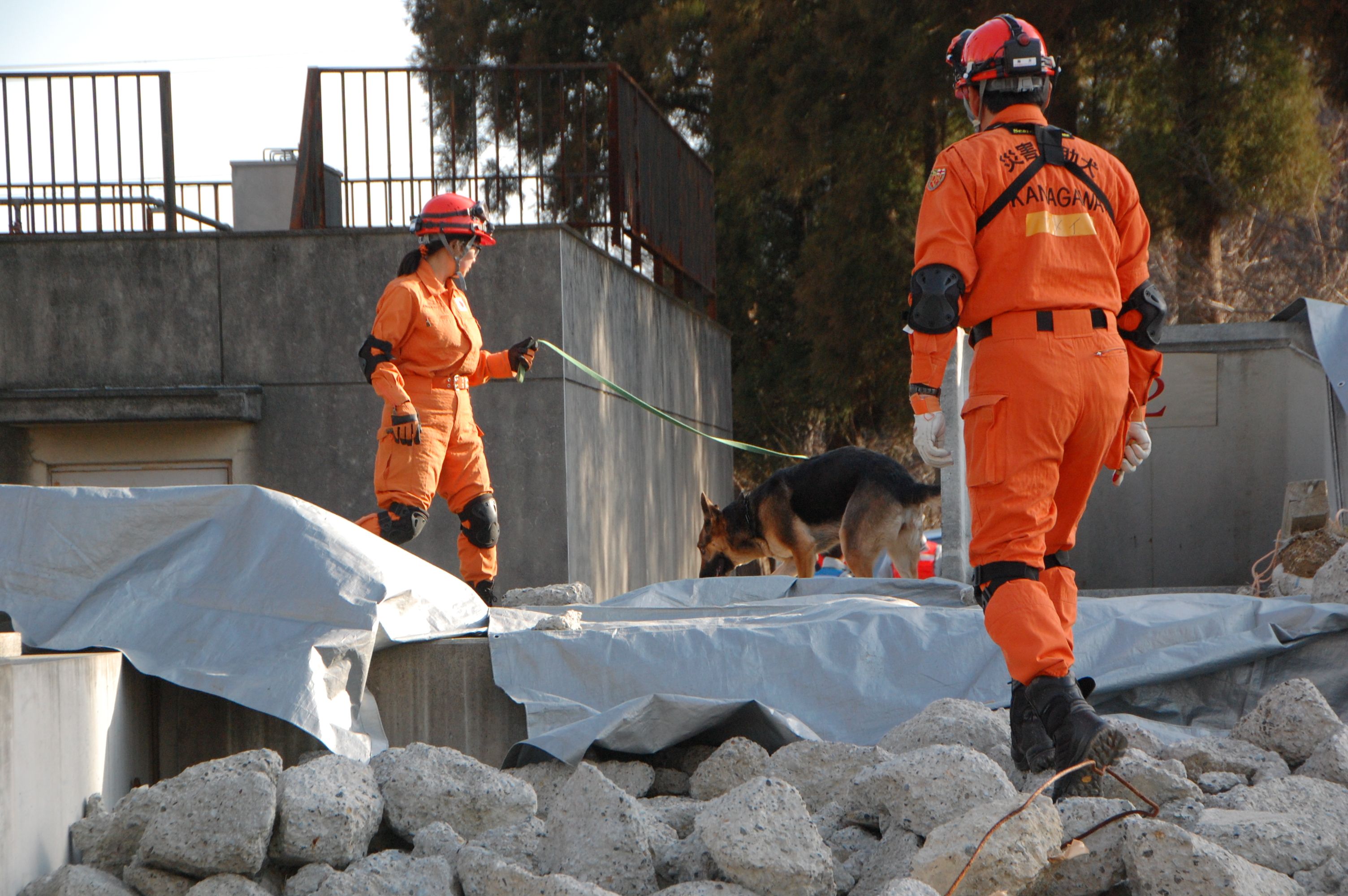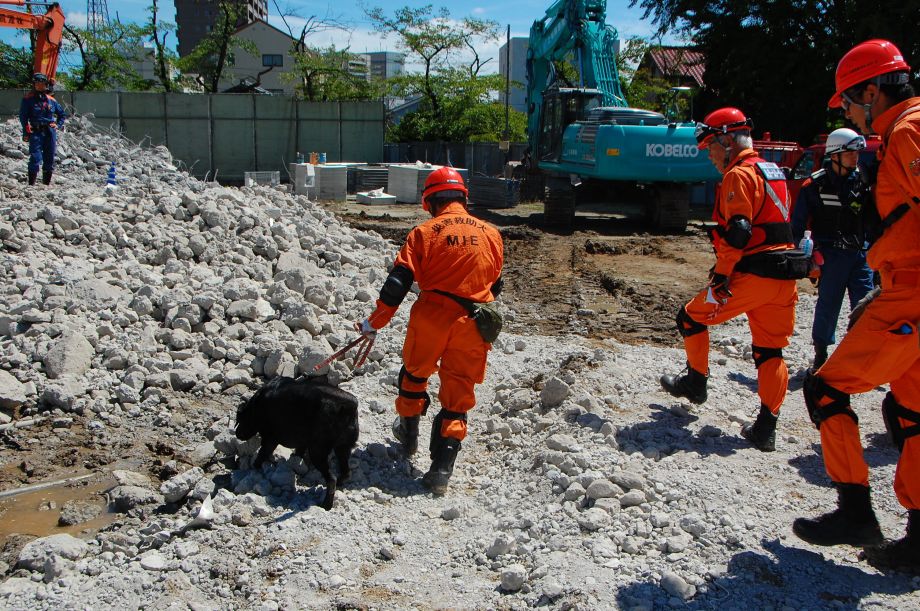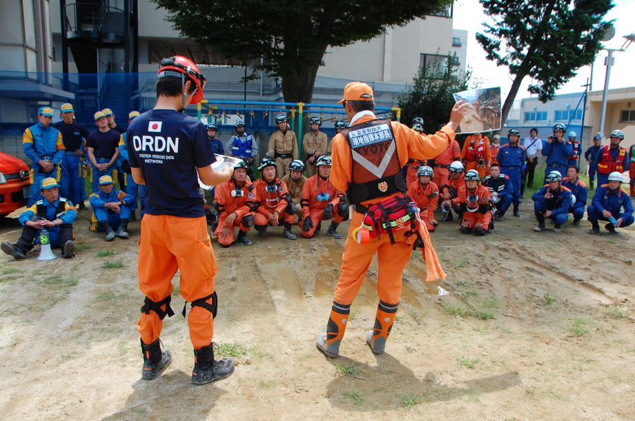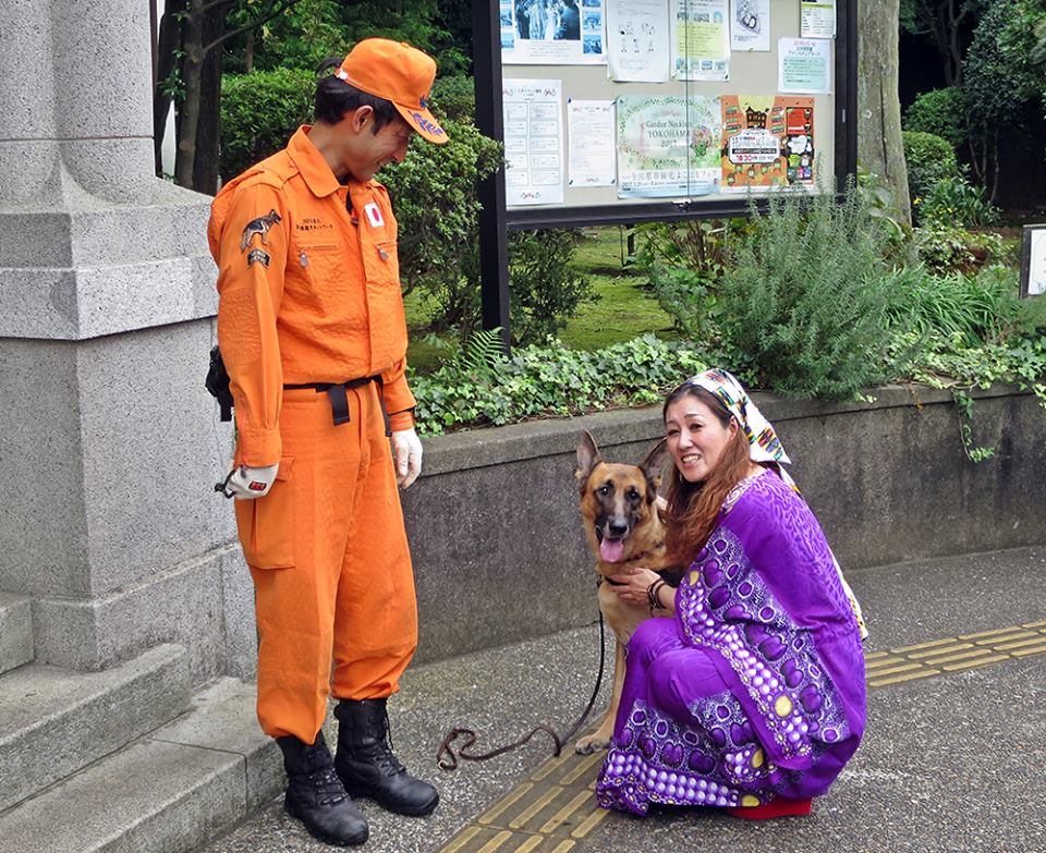 災害救助犬は捜索が重視されがちであるが、服従の是非が成果に直結するであろうことも意識されだしたようである。