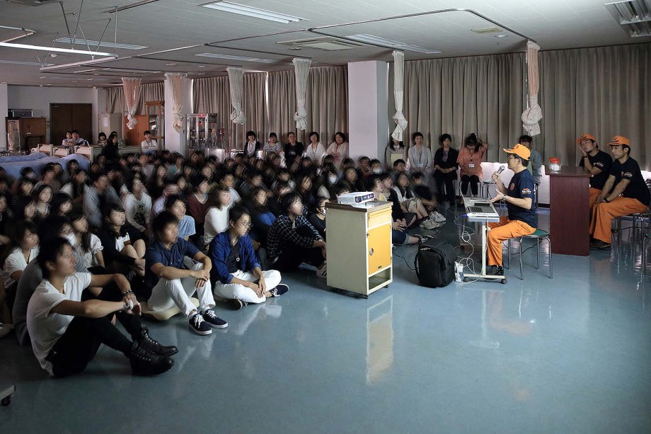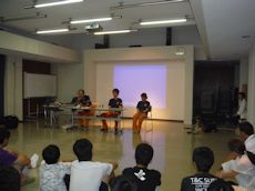 高校生から小学生まで30名程の子供たちに、社会人の話を聞く、災害救助犬には興味示すであろうと企画されたものである。
