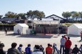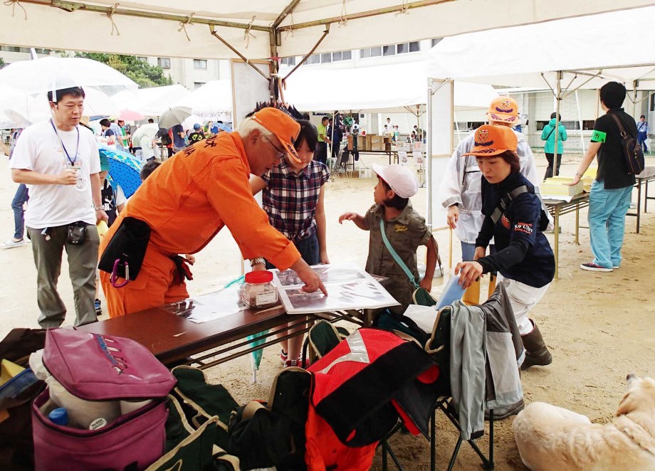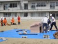 市内の学校での防災訓練で地域住民ができる限り自己完結することを目的とした住民参加型の防災訓練であった。