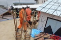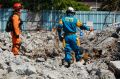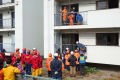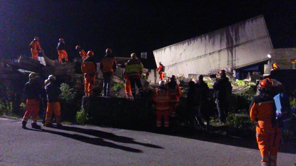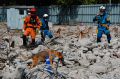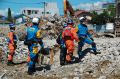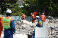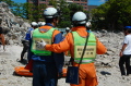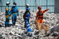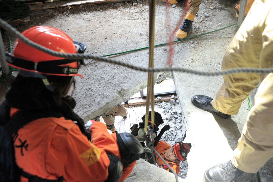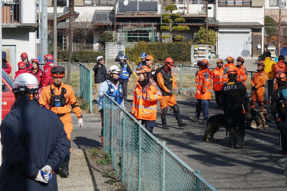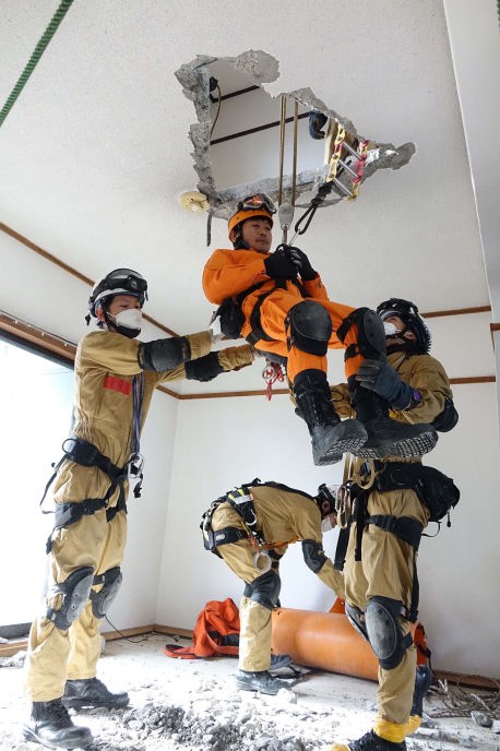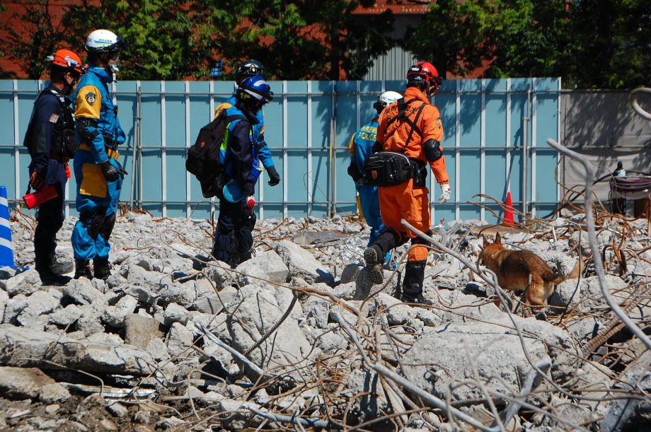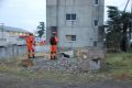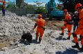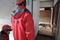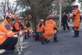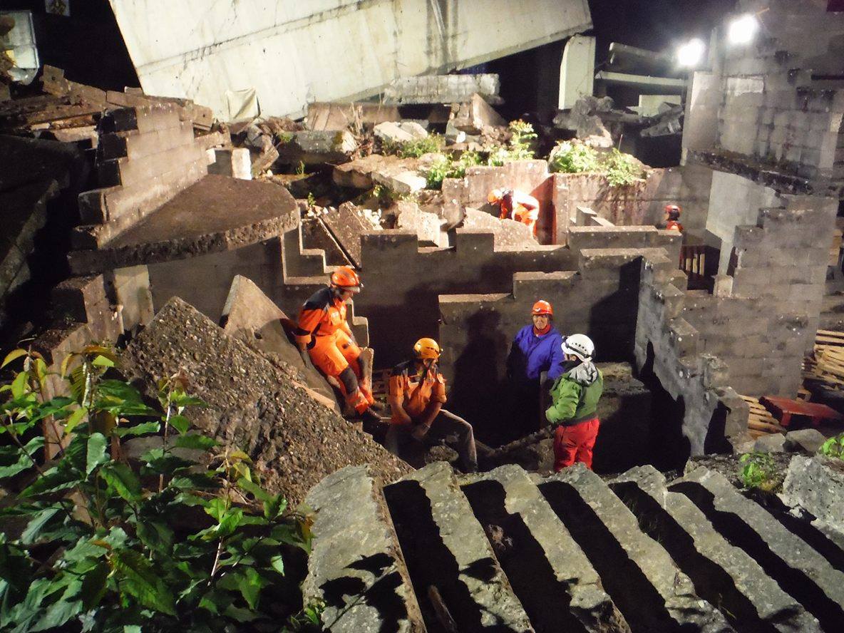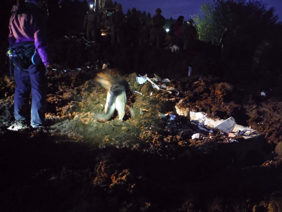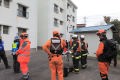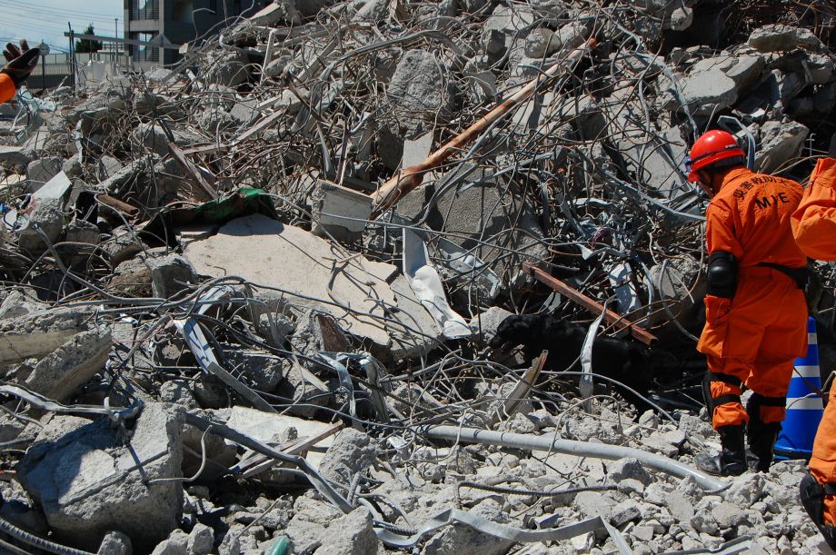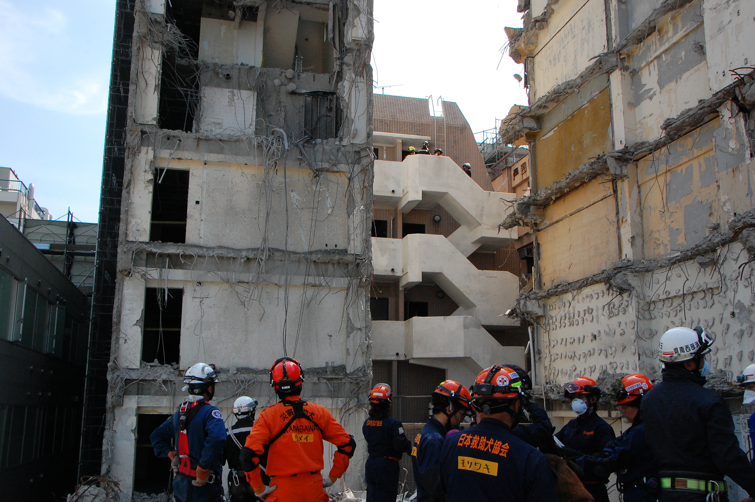 災害救助犬チームは安全管理者、隊長、ハンドラー2、災害救助犬2頭で倒壊家屋の行方不明者を捜索した。