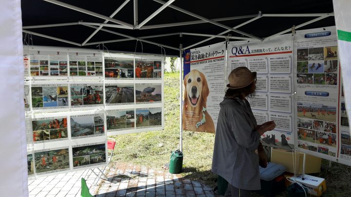 地元の収穫祭との併催だったため災害救助犬は入れずにパネル展示のみの広報活動となった。来年は災害救助犬のデモもありそうなので楽しみである。