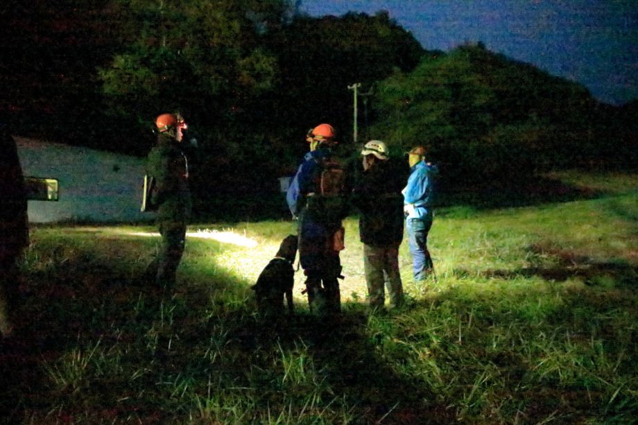 家族はいくつかの災害救助犬に要請したが、最終的に当会が協力することになり、7月2日6時から7名6頭で捜索に入った。