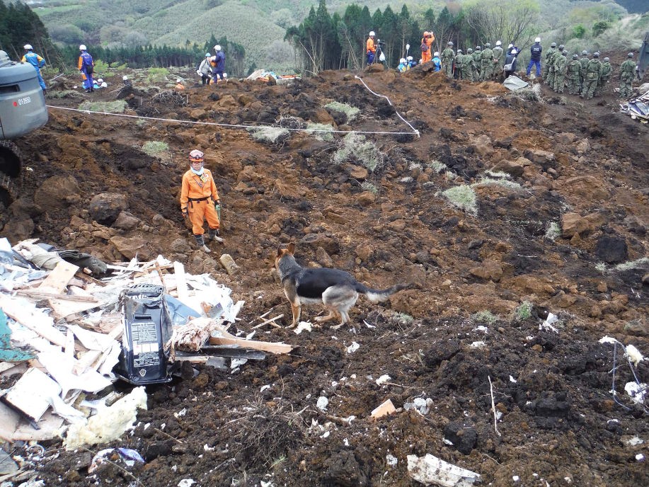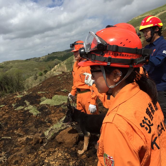 16日の本震後に多数の行方不明者が出て出動することとなった。先発していた和歌山救助犬からの情報を得ながら南阿蘇村に向かった。