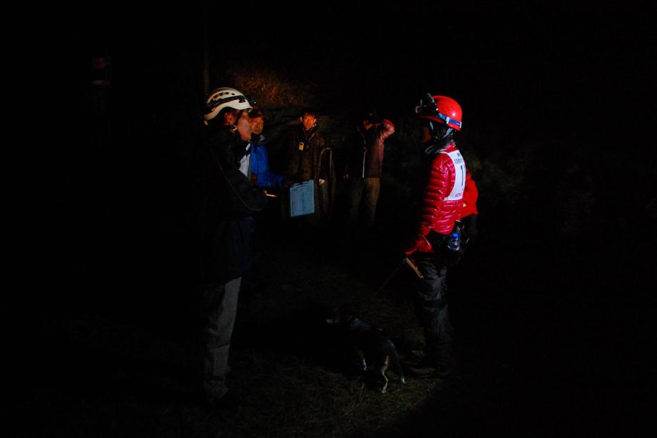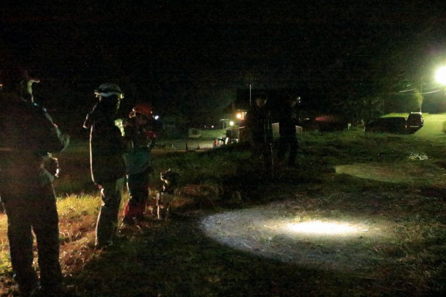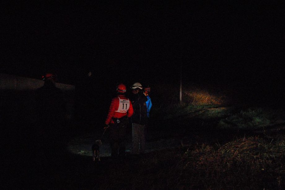 家屋捜索を想定したリフト乗り場と山野の捜索があり順序は選択できる。普段なら特に難しい場所ではないと思えても認定審査は緊張するものだ。進行の不手際もあり、日没となってしまった。不平も言わずヘッドライトを付け審査に臨んだ方々の合格率は高かった。