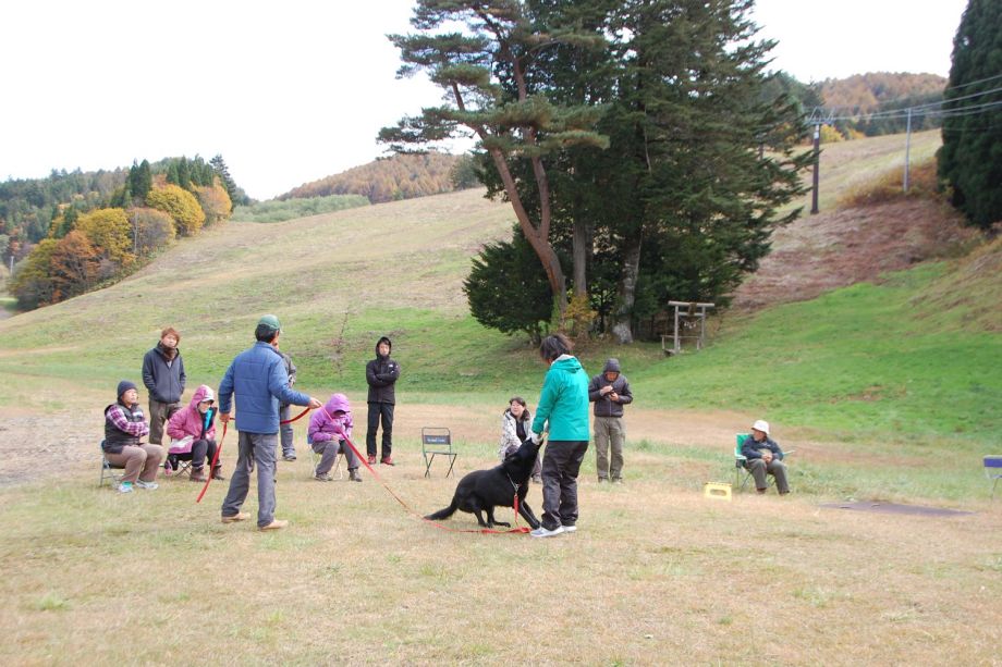 惜しくも通過できなかった2頭を含め、全員が翌日の服従セミナーに参加し弱点の克服をする。服従を基本と考えている取組みである。