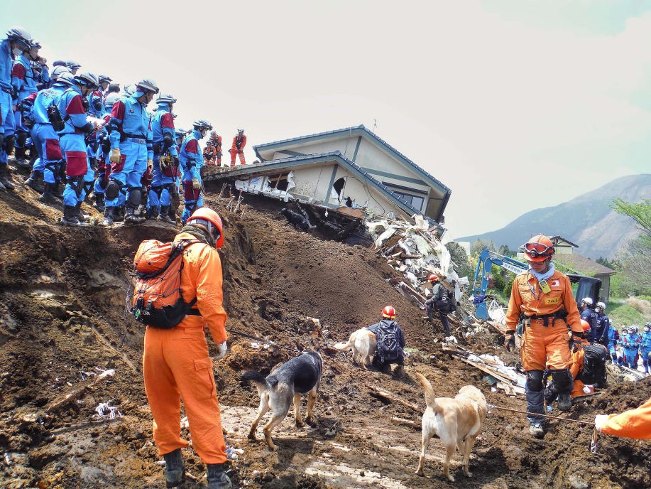 14日の余震では益城町に倒壊建物が出ていたが被災者は特定できていたので災害救助犬の必要性は低いと判断していた。