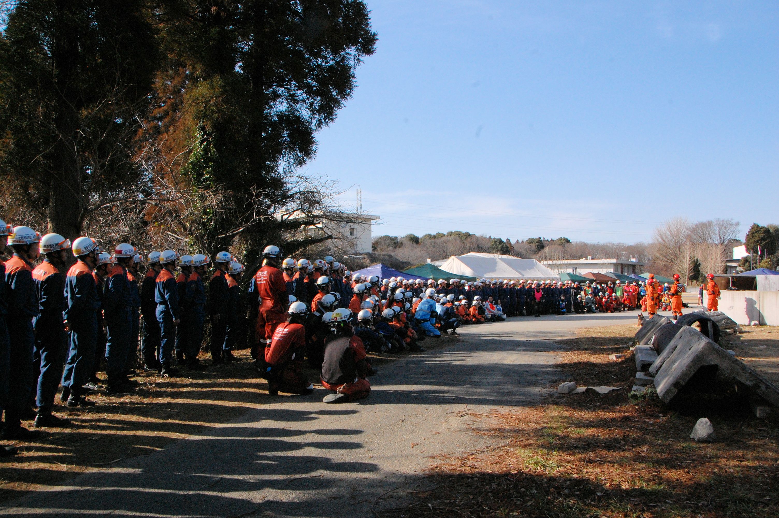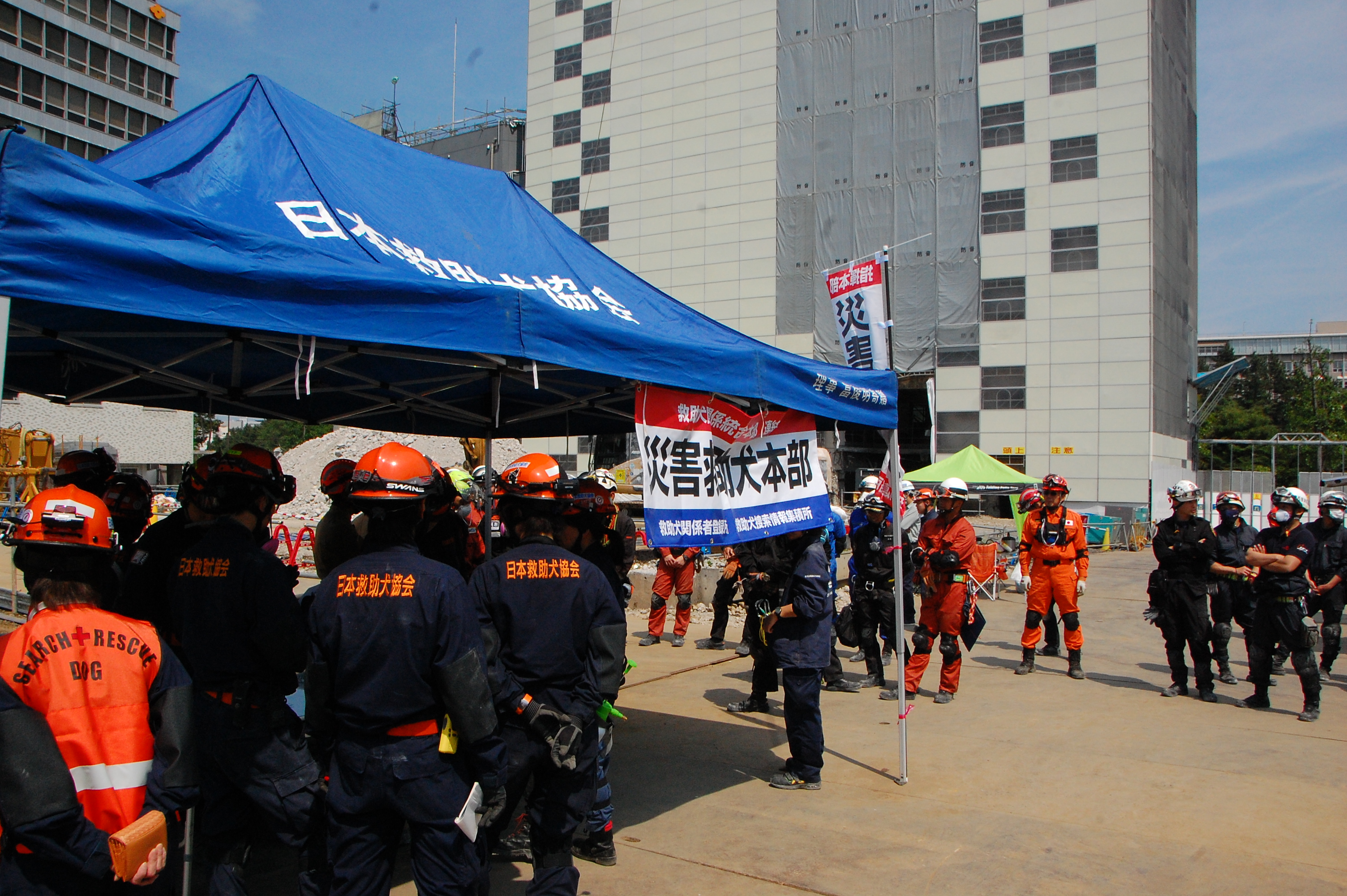 災害は突然やってくる。各地から現場に辿り着くタイムラグがあっても出動できる先着隊が活動準備を整えられるか、昨年から試みている連携が試される時であった。混乱する現場で整然と行動をすることは難しいことではあるが、現場に犬がいるだけでは何も役に立たず、災害地の散歩かと揶揄される。災害救助犬は救助隊に求められているのか、でなければ災害救助犬の特性を生かせることはできない。