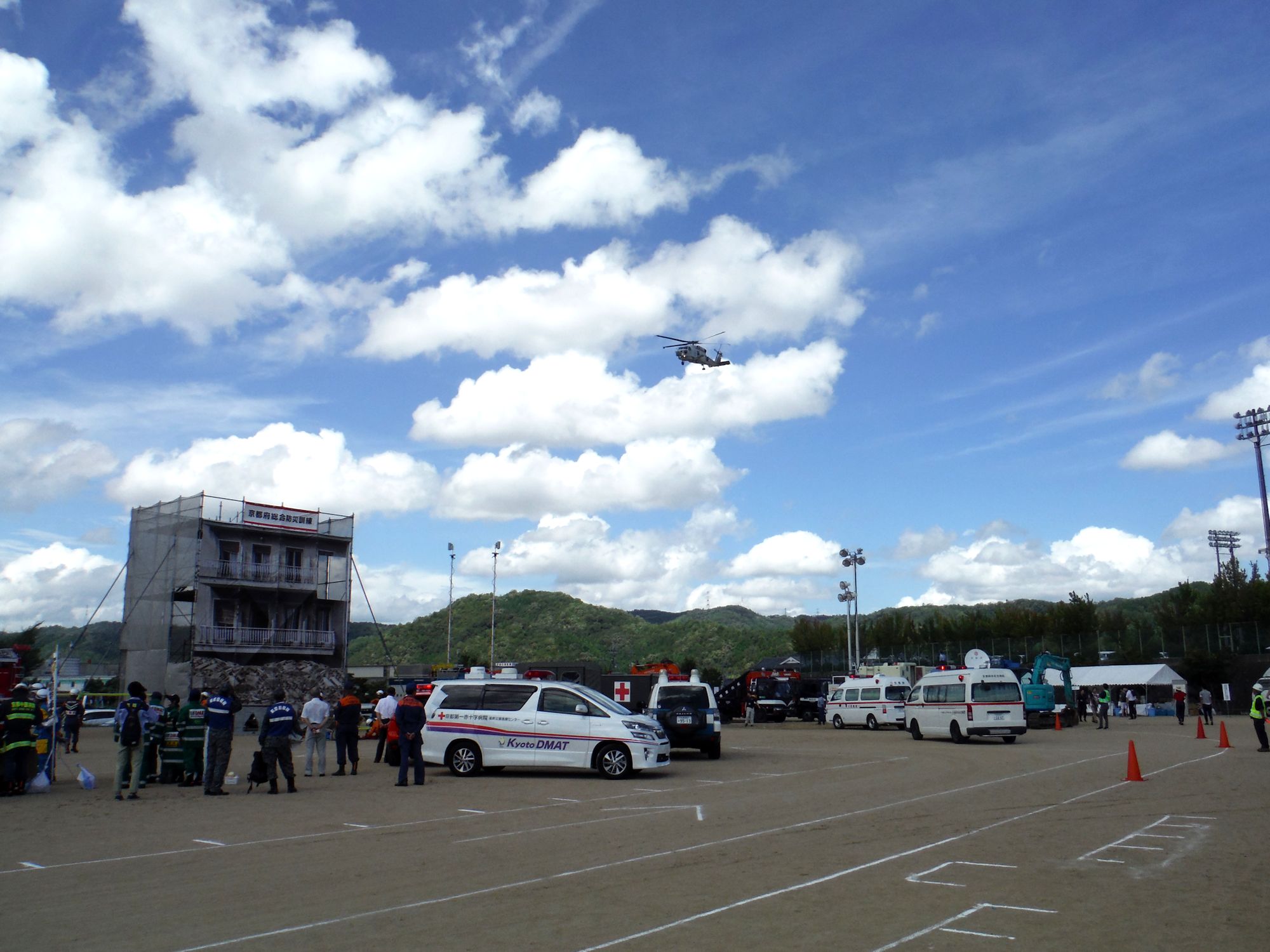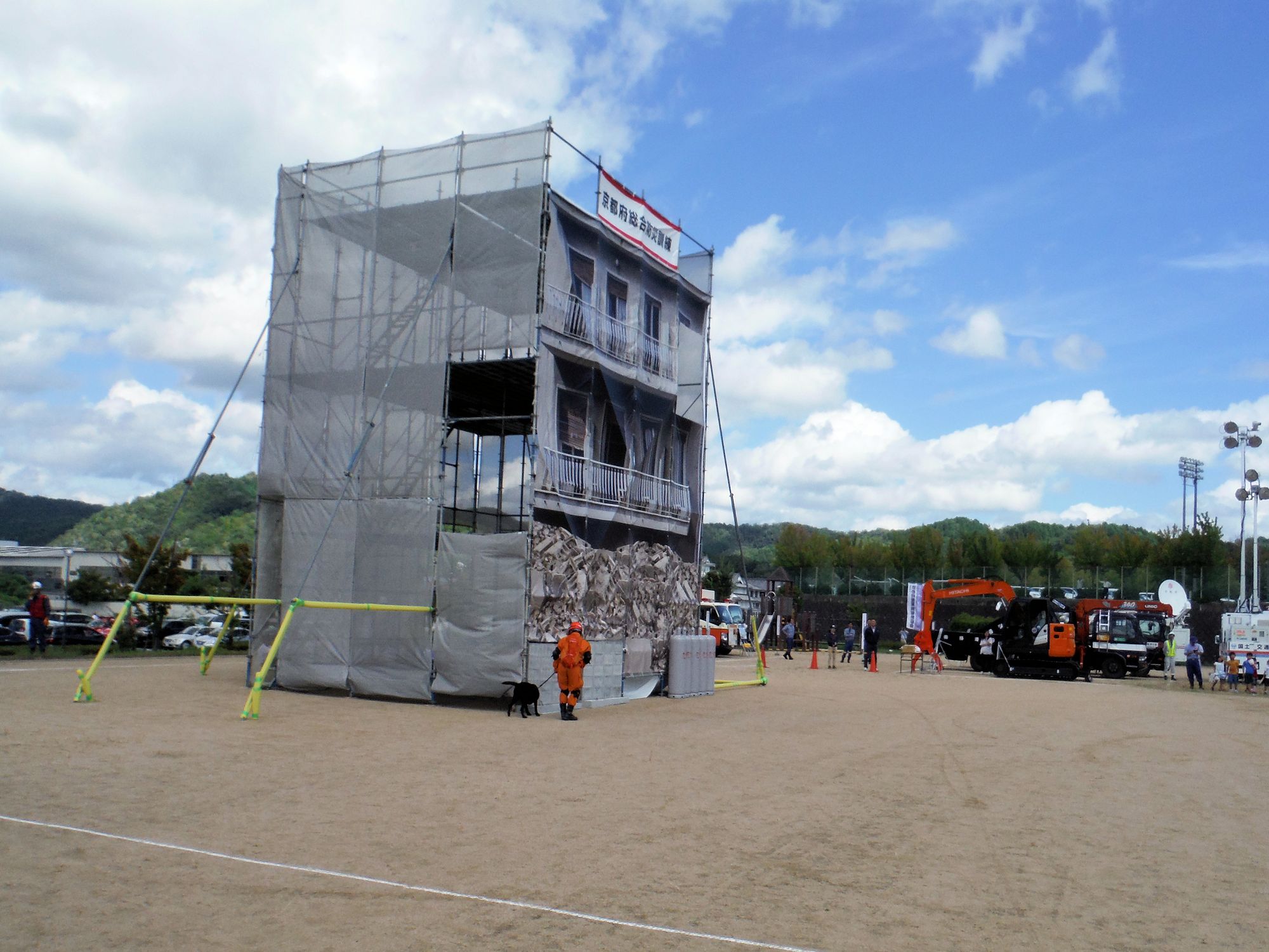 出動協定先でもある京都府の防災訓練である。京都府においては形式的なイベントととしての開催とは別に実務的に人命救助に対しての取組みも進んでいる。