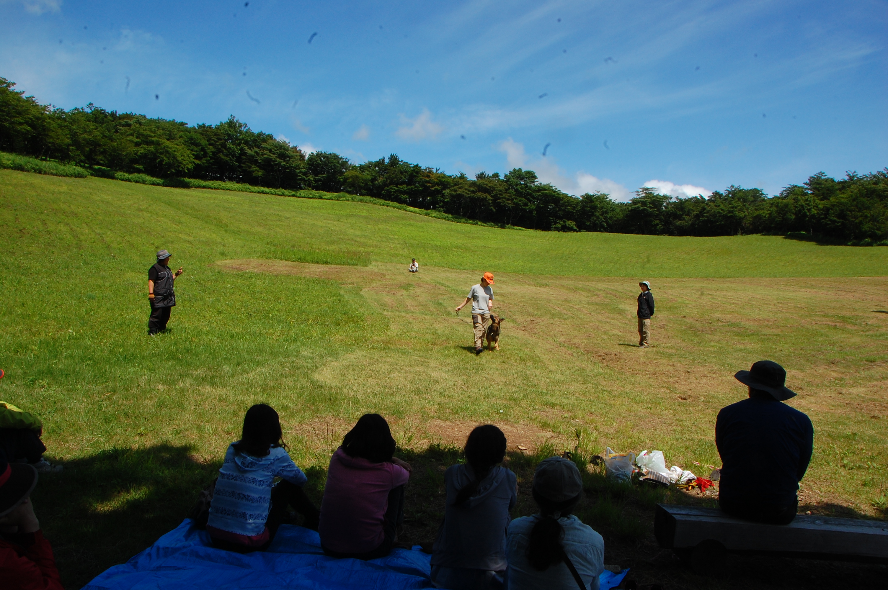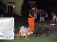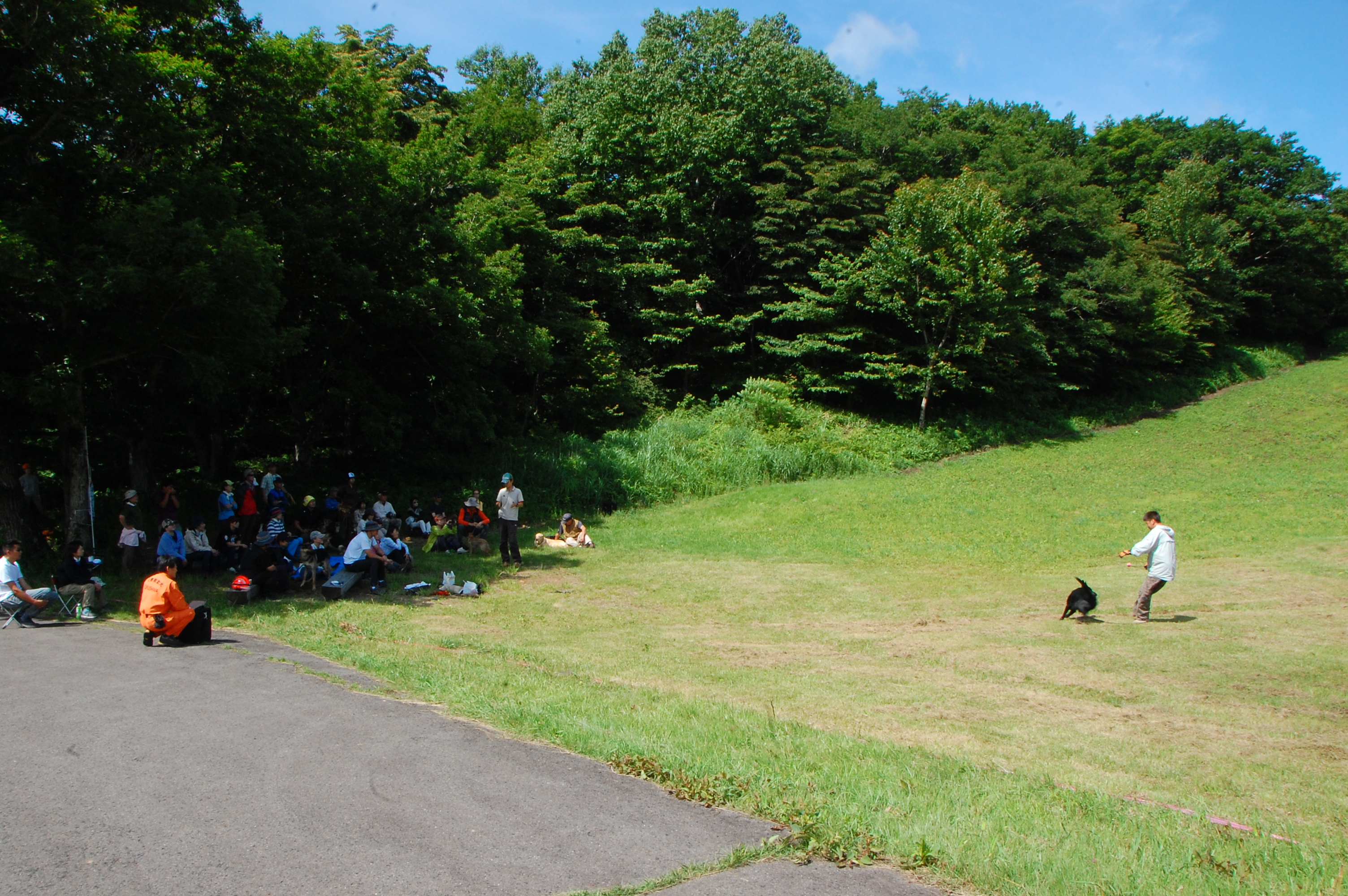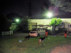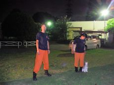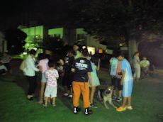 後半は屋外でライトを照らしながらデモを行った。服従、BOX捜索後のふれあいにはすっかり打ち解けて犬たちに話しかけていた。この中から将来のハンドラーが生まれてくることに期待したい。