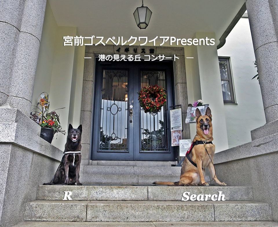 宮前ゴスペルクワイアのコンサートが横浜港の見える丘公園イギリス館で行われました。歌手後藤美幸女史の発案で入場収入を全額寄付していただくことになっており、また来場者にもその趣旨を理解して賛同いただけるように会場前にお礼も兼ねて現地へ出かけた。コンサートと災害救助犬、不釣り合いな組み合わせだが広く災害救助犬への支援が進むことは大変ありがたい。いろいろな方々からの支援は、反面厳しい目で見られていることに他ならない。自覚をもって活動に取り組みたい。